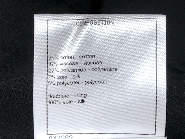 ポリエステル 35%、コットン 31%、ビスコース 22%、ポリアミド 7%、シルク 5%