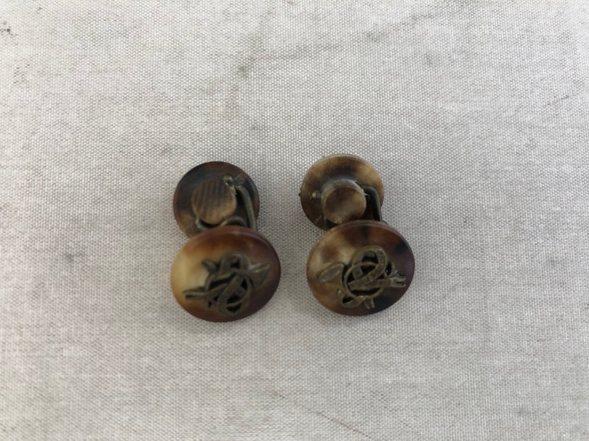 【HERMES】 エルメス カフスボタン ホーン(ラッパ)モチーフ ブラウン系カラー 服飾小物 SY02-FQT