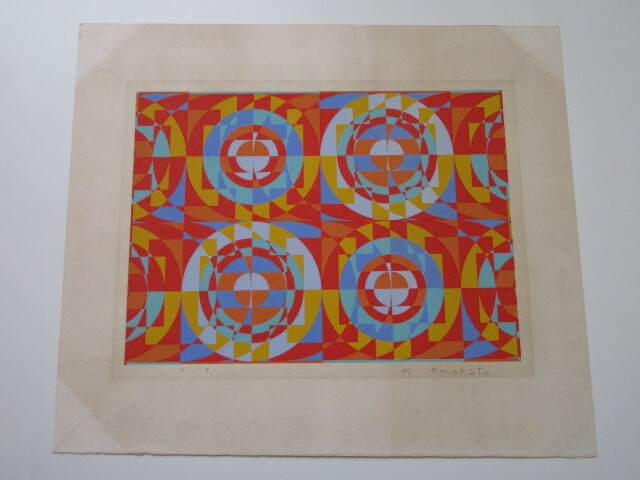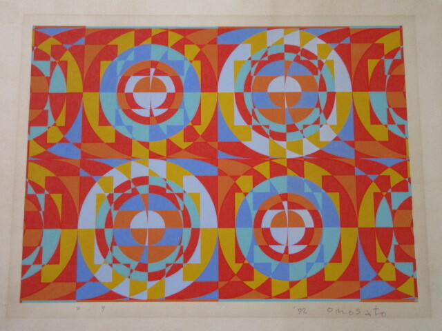 真作保証 オノサト・トシノブ 1972年 幾何学 抽象画 シルクスクリーン 画寸 : 最大部分 約 縦幅 27cm 横幅 35.5cm / 用紙 約 縦幅 38.5cm 横幅 44.8cm