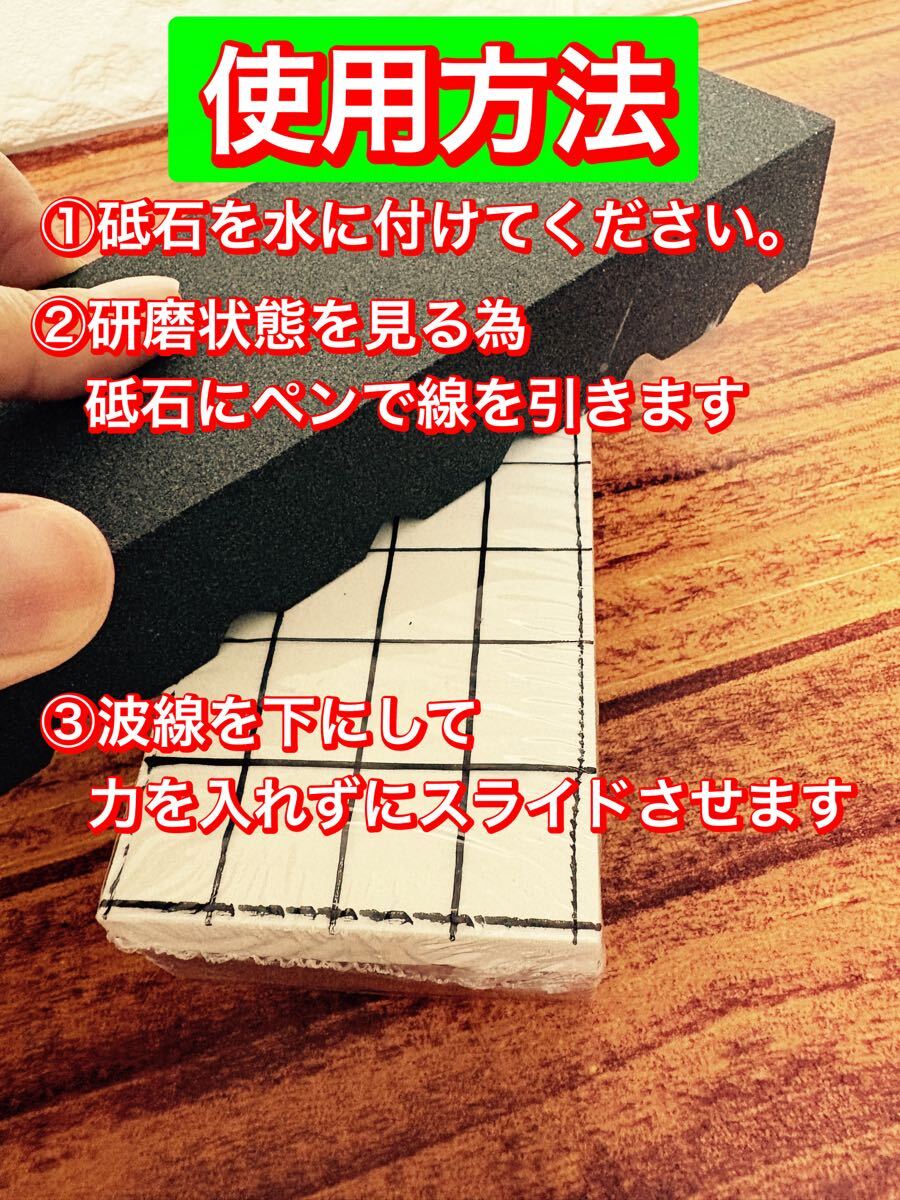 刃物を研ぐ前に、修正砥石の砥粒は洗い流してください。