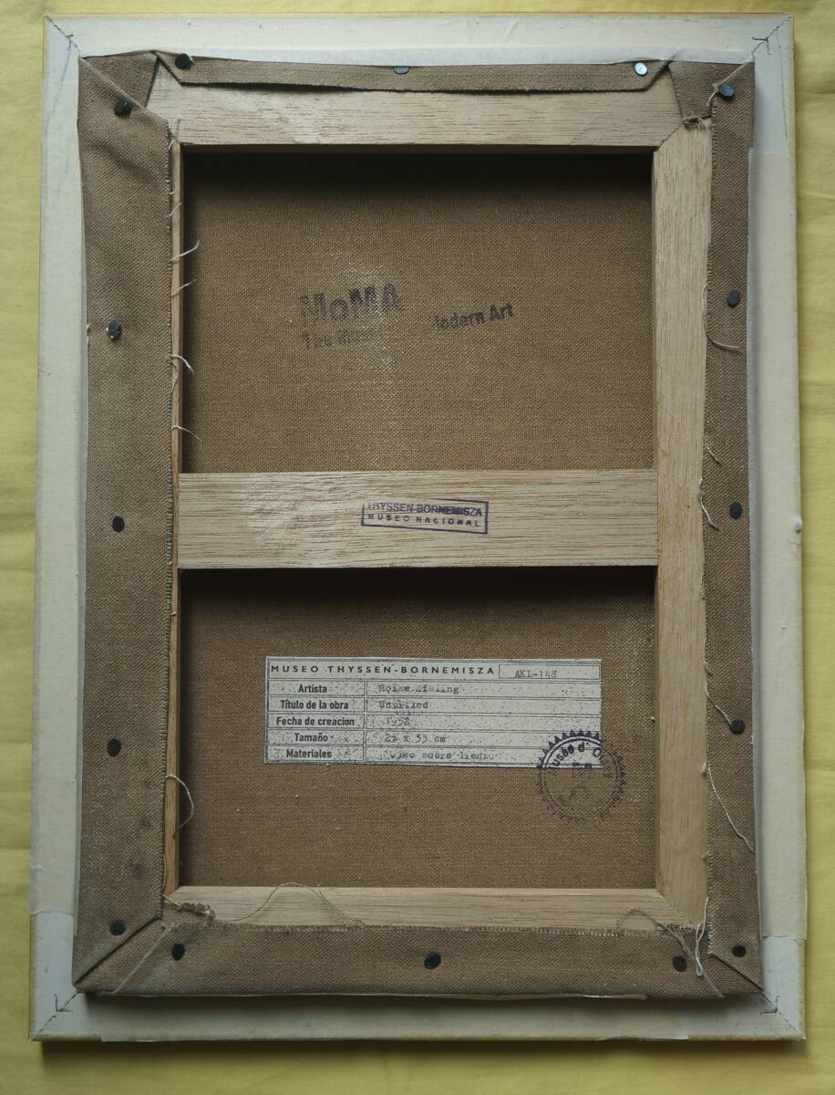 商品説明 | モイズ・キスリングの油彩/キャンバスの肉筆原画です。1952年に描いた「Untitled(無題)」(油彩/キャンバス、写真掲載)の習作と思われます。出品作品は本作(カタログレゾネ)と比べると、筆致、構図、色調とも本作に近く繊細で美しい色彩の作品になっています。裏面にスペイン、マドリードの美術館の「ティッセンボルネミッサ美術館」の認証票(作品概要を記載、作品番号:AKL-148)があり、真作であることを示しています。保管環境が優良だったため、絵画面、裏面ともに保存状態は大変良好です。 なお、額縁は作品完成後しばらく経過しての額装のようで、前面にガラスなどのカバーはありません。落札者で新額装をご希望の方は別途ご案内しますので、その旨を取引ナビでお知らせください。 制作年:1952年 作品サイズ:約35 x 25cm 額縁サイズ:約40 x 30cm |