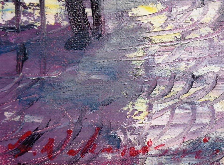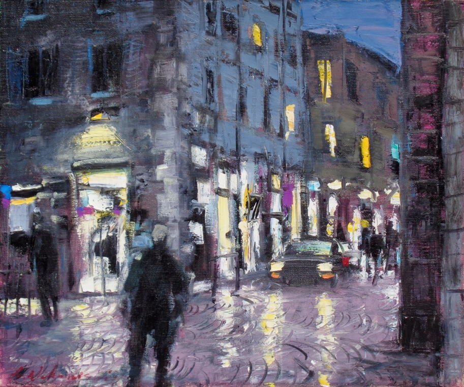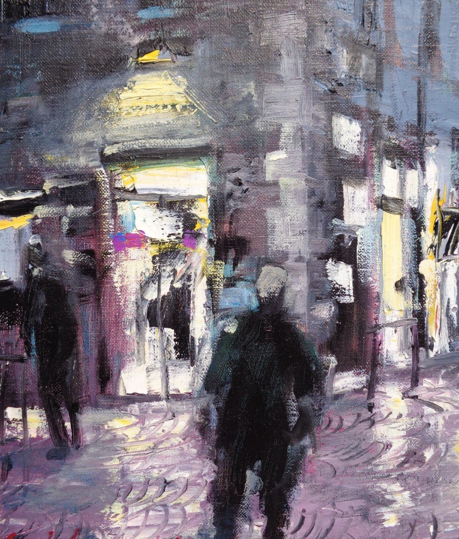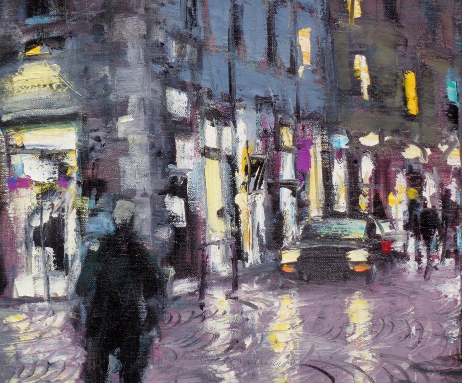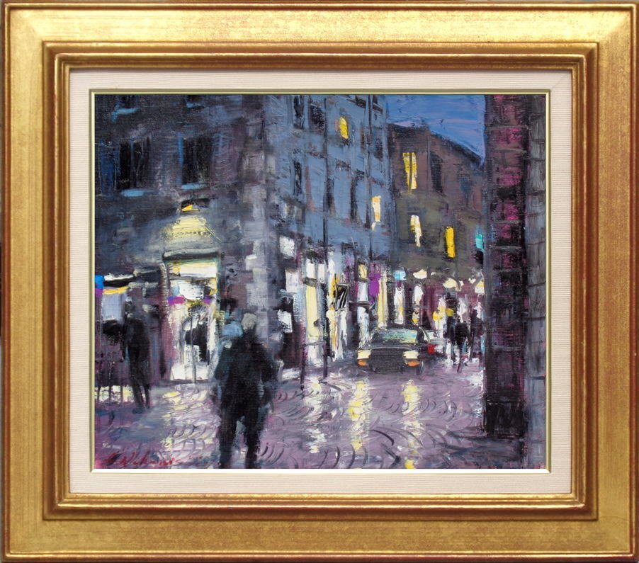 ☆人気作家のもっとも人気ある車のヘッドライトが描かれた街の夜景の一枚ですが、作品入れ替えのため千円(税別)から成行き売切ります。