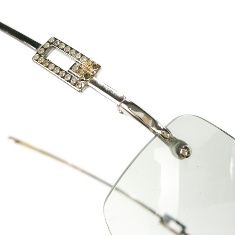 【状態】サイドのラインストーンに一部取れ、レンズ鼻パッド付近に一部剥げ、ツルの滑り止めが右側欠品など、使用感がございますが、その他には目立った汚れやダメージはありません。 ※あくまでも中古品ですので掲載写真や記載内容をご確認いただき、ご理解の上ご購入ください。