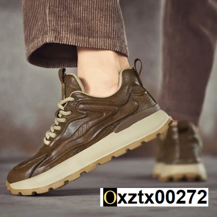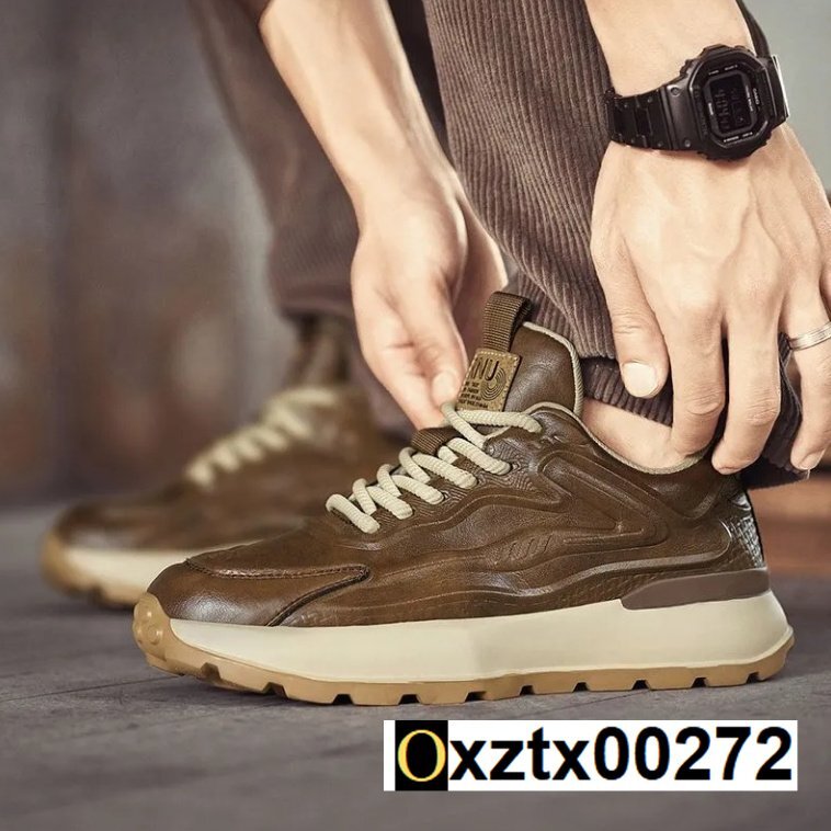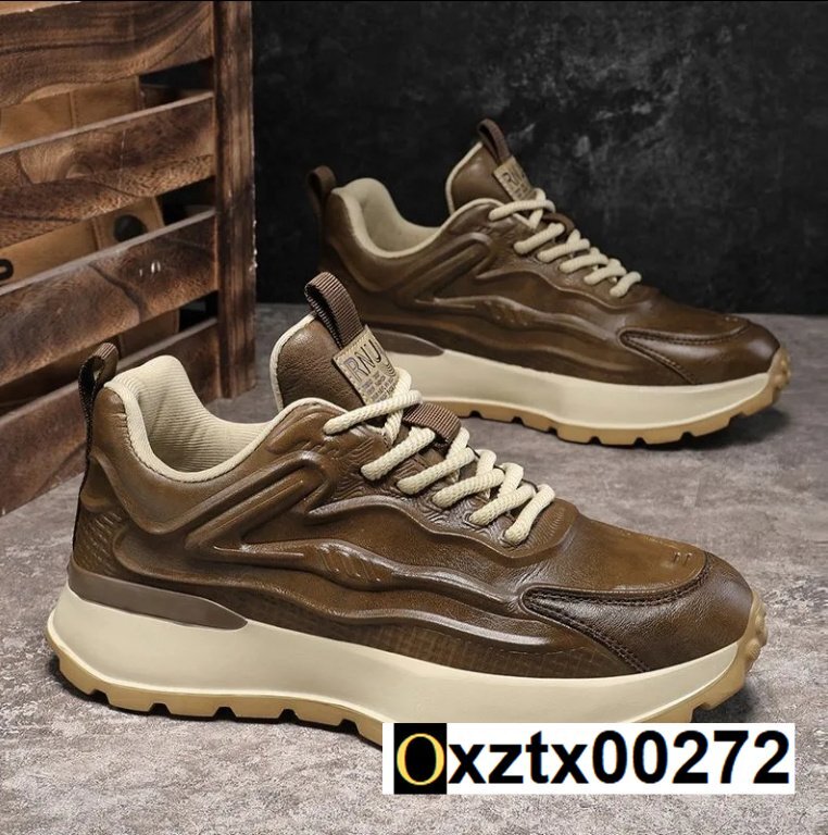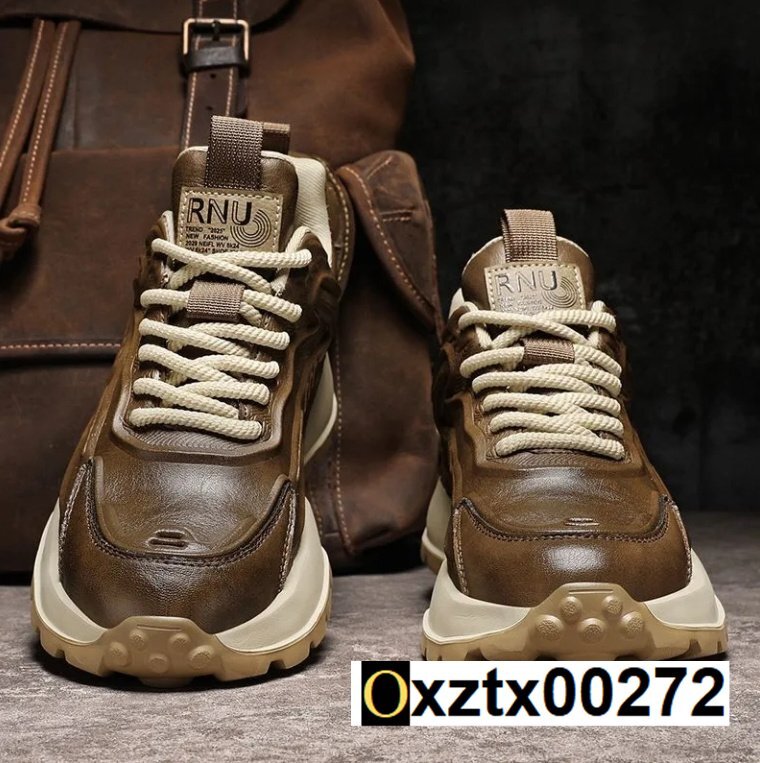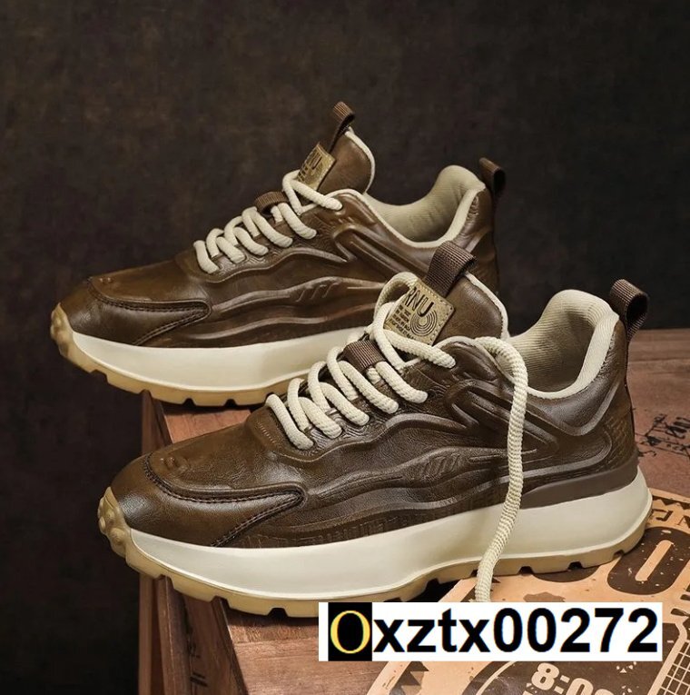 トレンドの新作ブラックレザーのメンズ厚底高スニーカーレトロシューズ