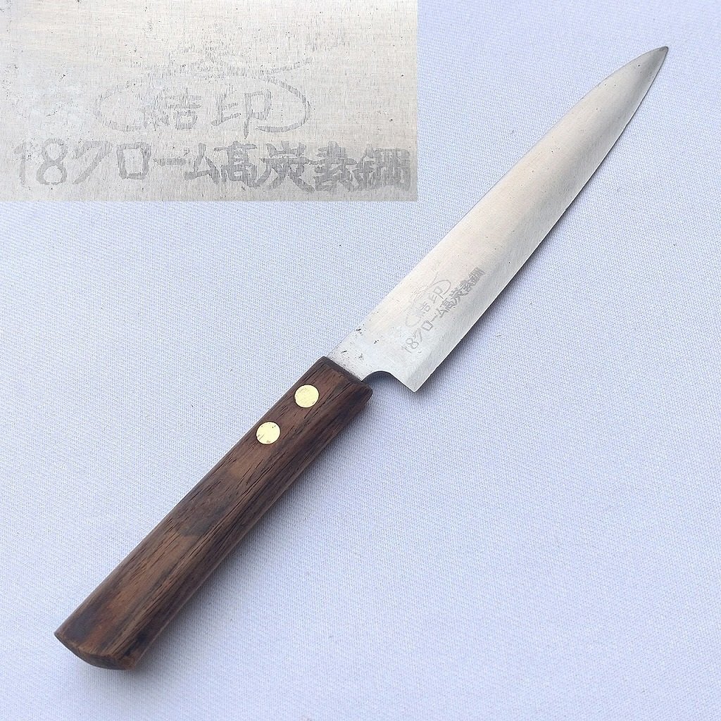 ぺティナイフ 結印 18クローム高炭素鋼 刃長約133㎜ 両刃 洋包丁 小型包丁 調理器具 庖丁 刃物 日本製 【2777】