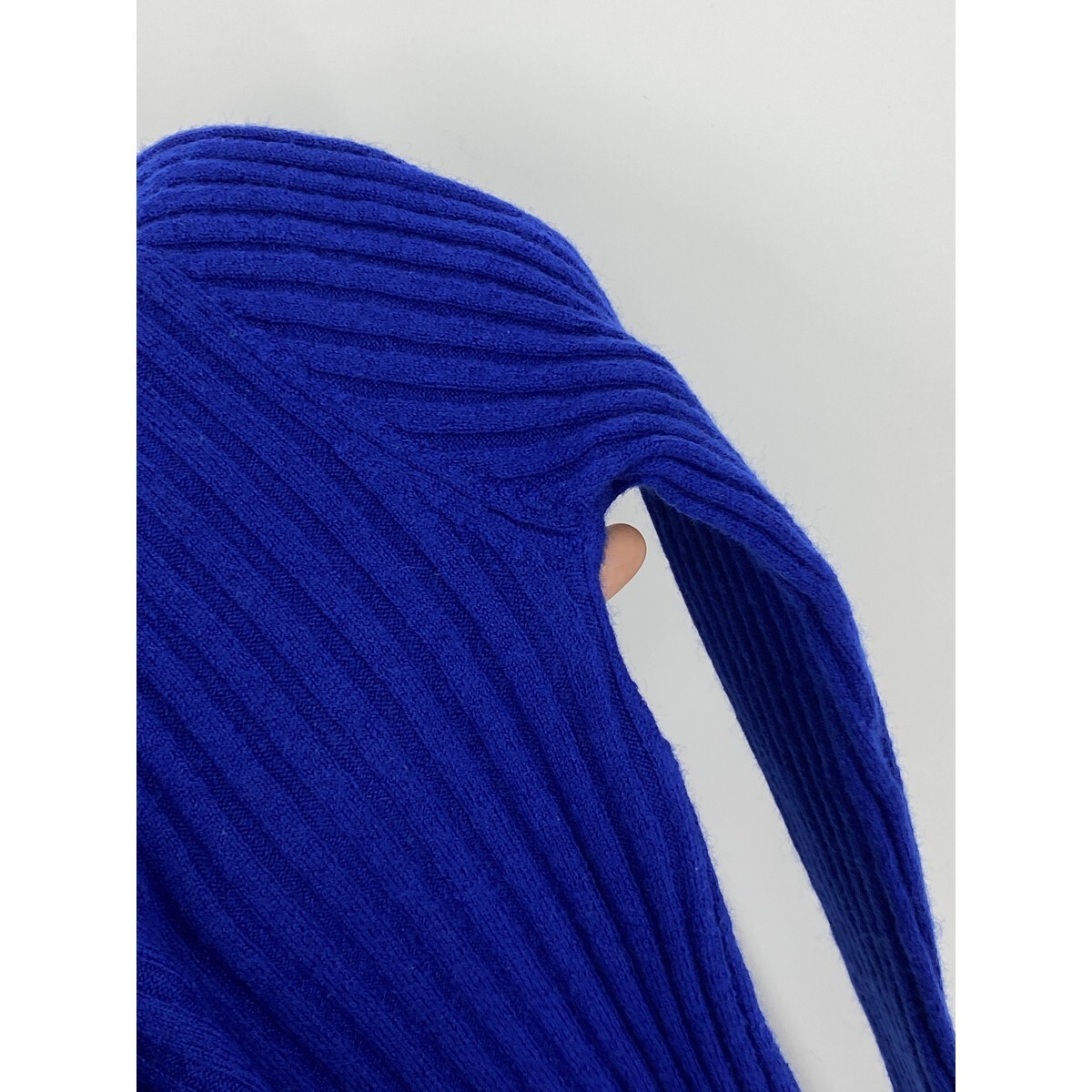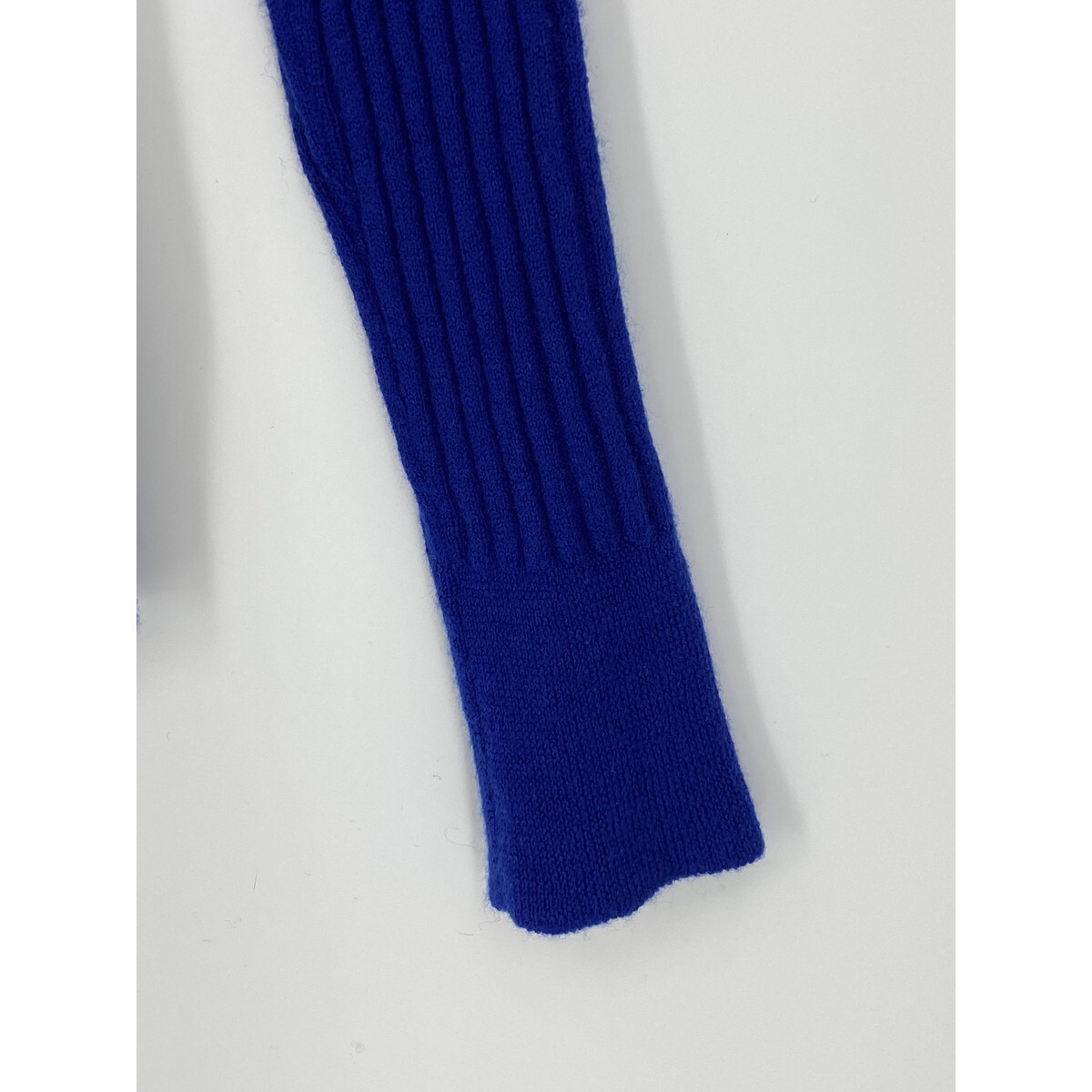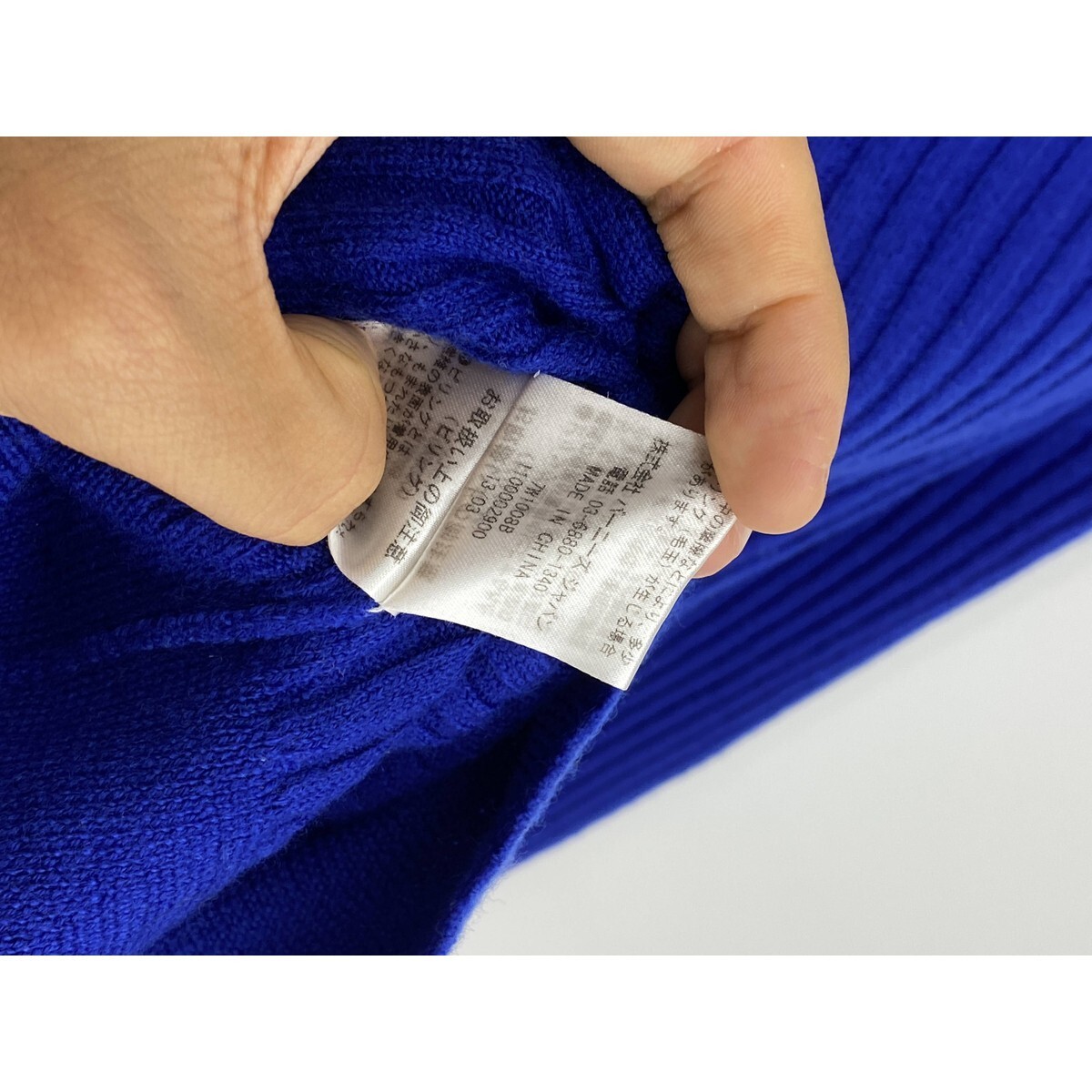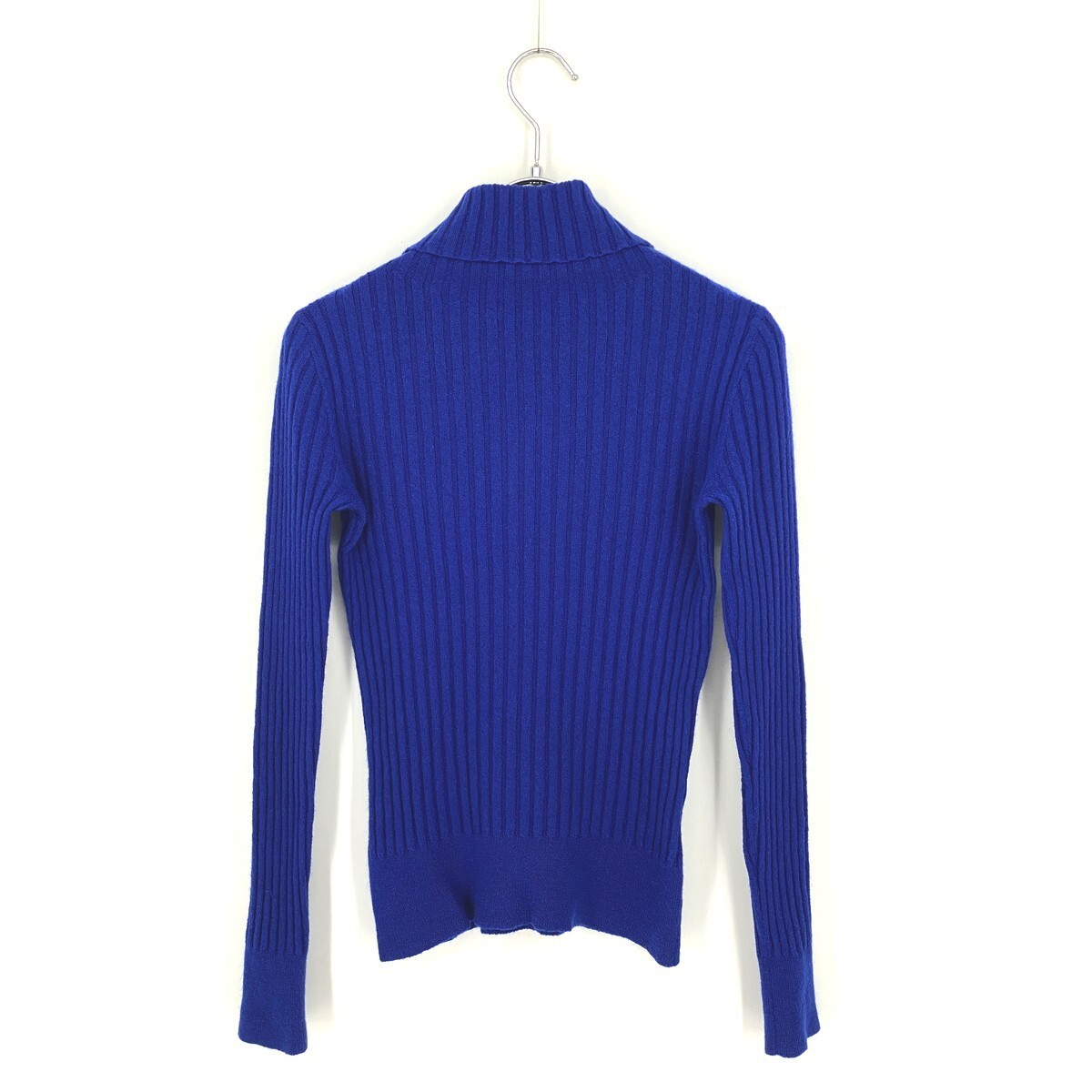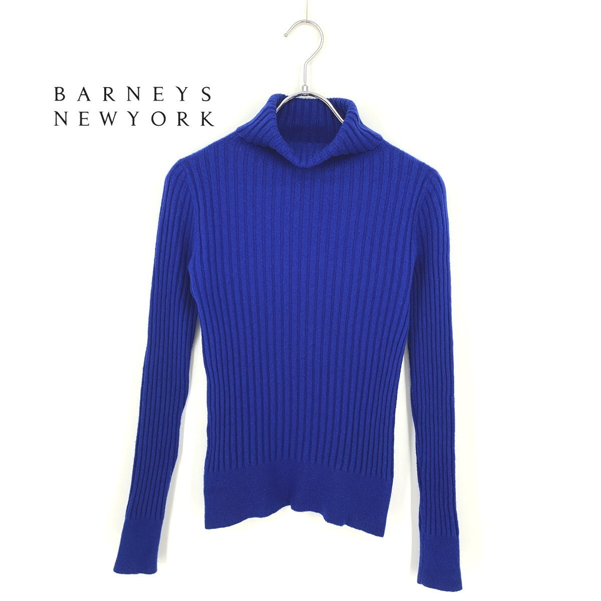 B0887/美品 BARNEYS NEWYORK バーニーズ ウール 無地 タートルネック 長袖 ニット リブ セーター 38 M程 青 レディース カーディガン