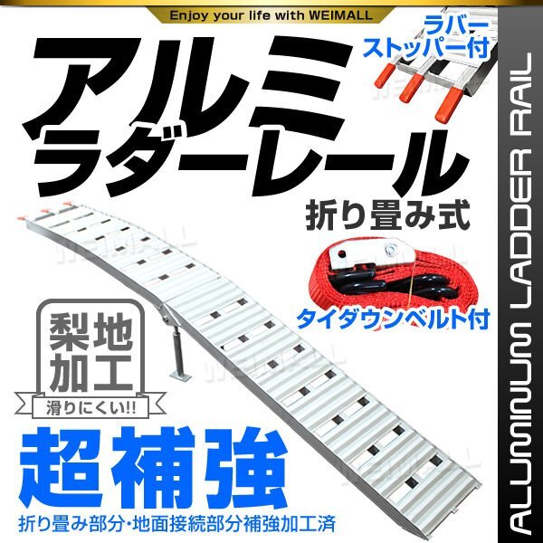 ATV四輪バギー・ダンプやトラック等にユンボやローラー・耕運機・バイクなどを積込みする為の折りたたみ式アルミラダーです。 表面に梨地処理施しており、通常タイプより滑りにくい構造! 車高の低い積込み時に、とても役に立ちます。 軽量加工、滑り止め加工もしております。 折たたみ部分や地面接続部分を補強加工致しておりますので、 より重いものでも耐えられるようになりました。 仕 様 折りたたみ式 全長:約2,180mm 幅 : 280mm 折りたたみ時サイズ:約1115×300×140mm 耐荷重:340kg 重量 8.0kg 素材 : アルミ ※写真と実物は多少異なる場合がございます。あらかじめご了承下さい。 ※画像にございます、アルミラダーを立てかけた黒い台は付属しておりません。 |