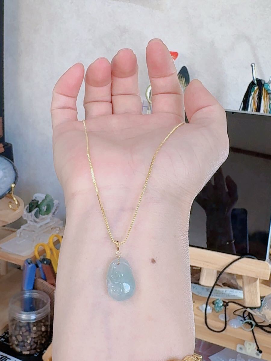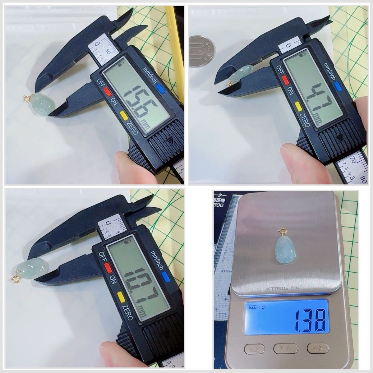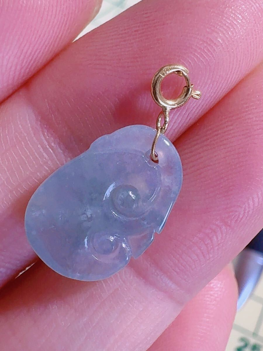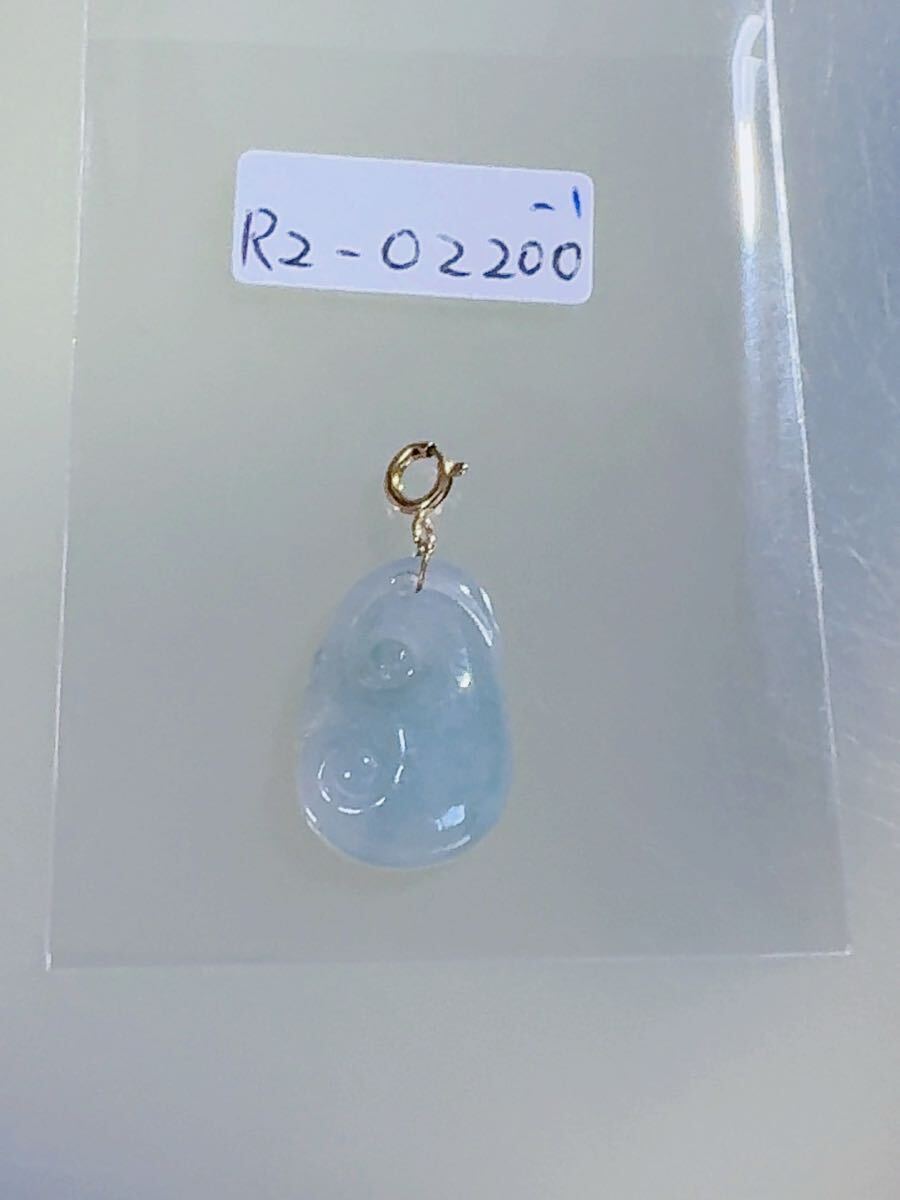 R2-02200-1天然本翡翠《本物保証》 高氷種淡緑色翡翠 「如意」ミニペンダント トップK18 一点物 希少 縁起物 お守り パワーストーン