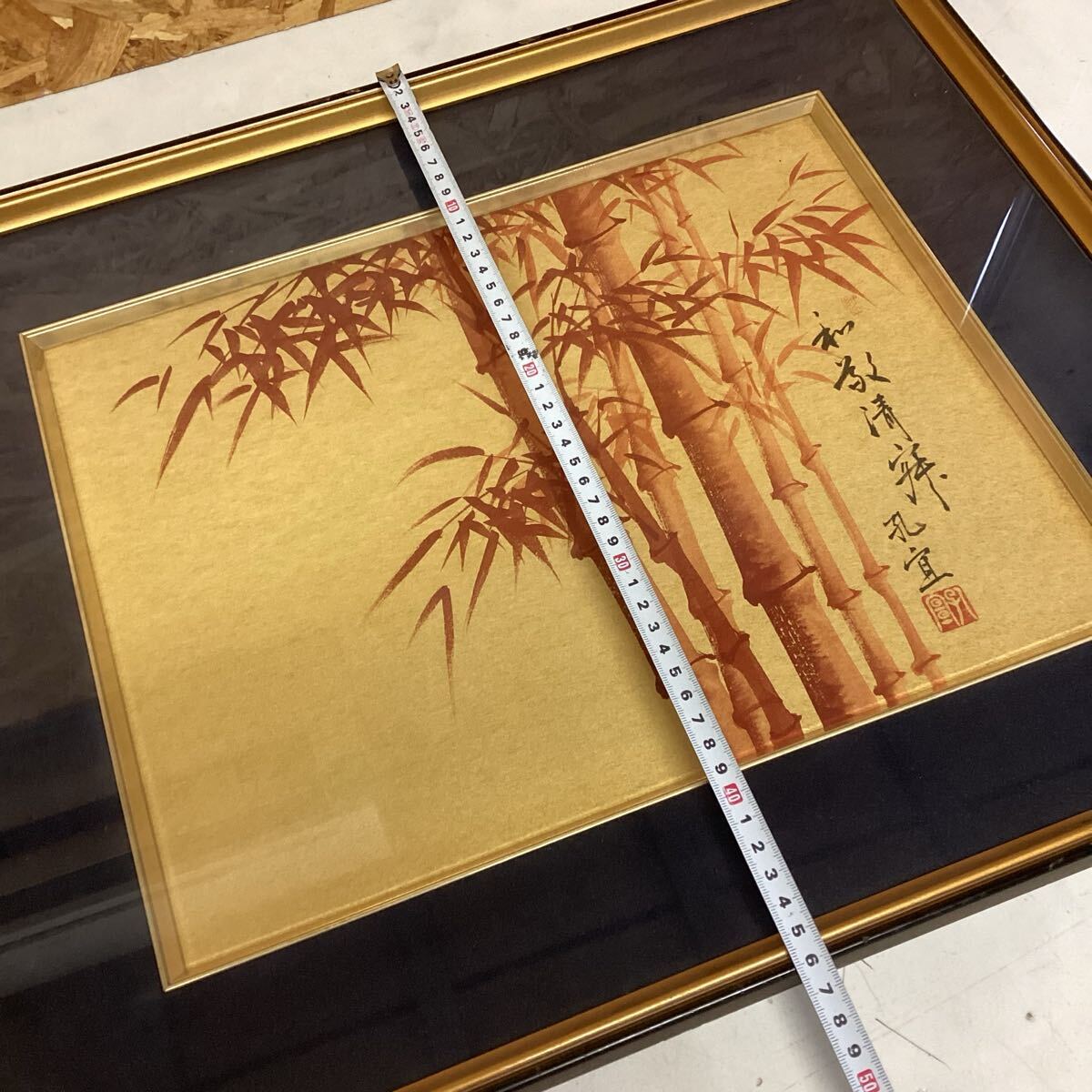 竹の日本画 朱竹 額縁入り 縁起物 孔宜 金縁 和風 古風 絵画 美術品(M55