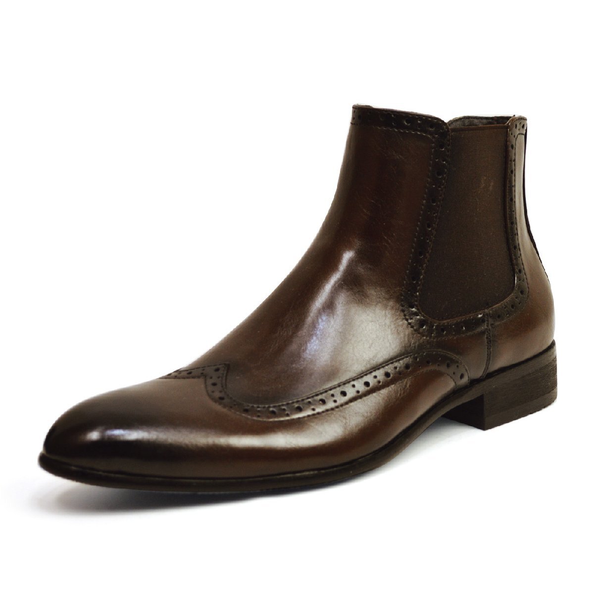 ビジネスブーツ 革靴 サイドゴア フォーマル イタリアン メンズ ショートブーツ ヴィンテージ ウイングチップ Zeeno 男 靴 ze1999