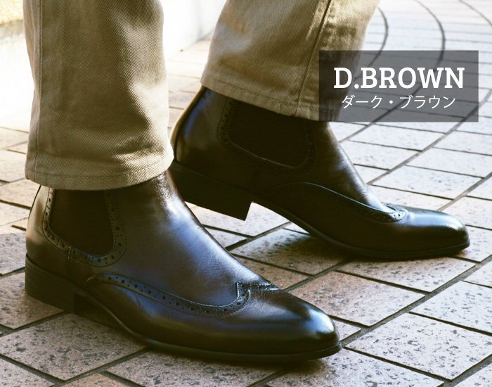新品■27cm ビジネスブーツ 革靴 サイドゴア フォーマル イタリアン メンズ ショートブーツ ヴィンテージ ウイングチップ Zeeno 男 靴