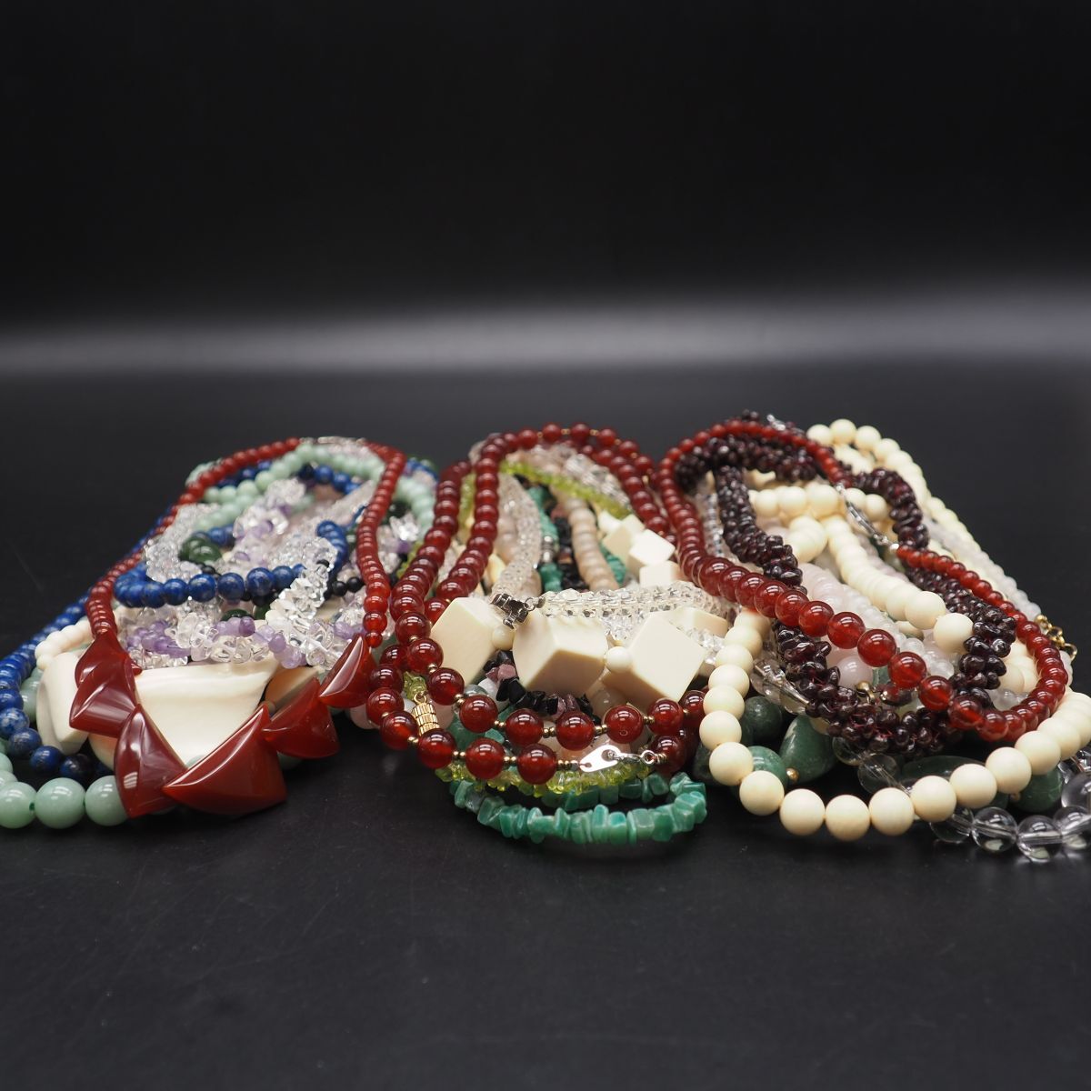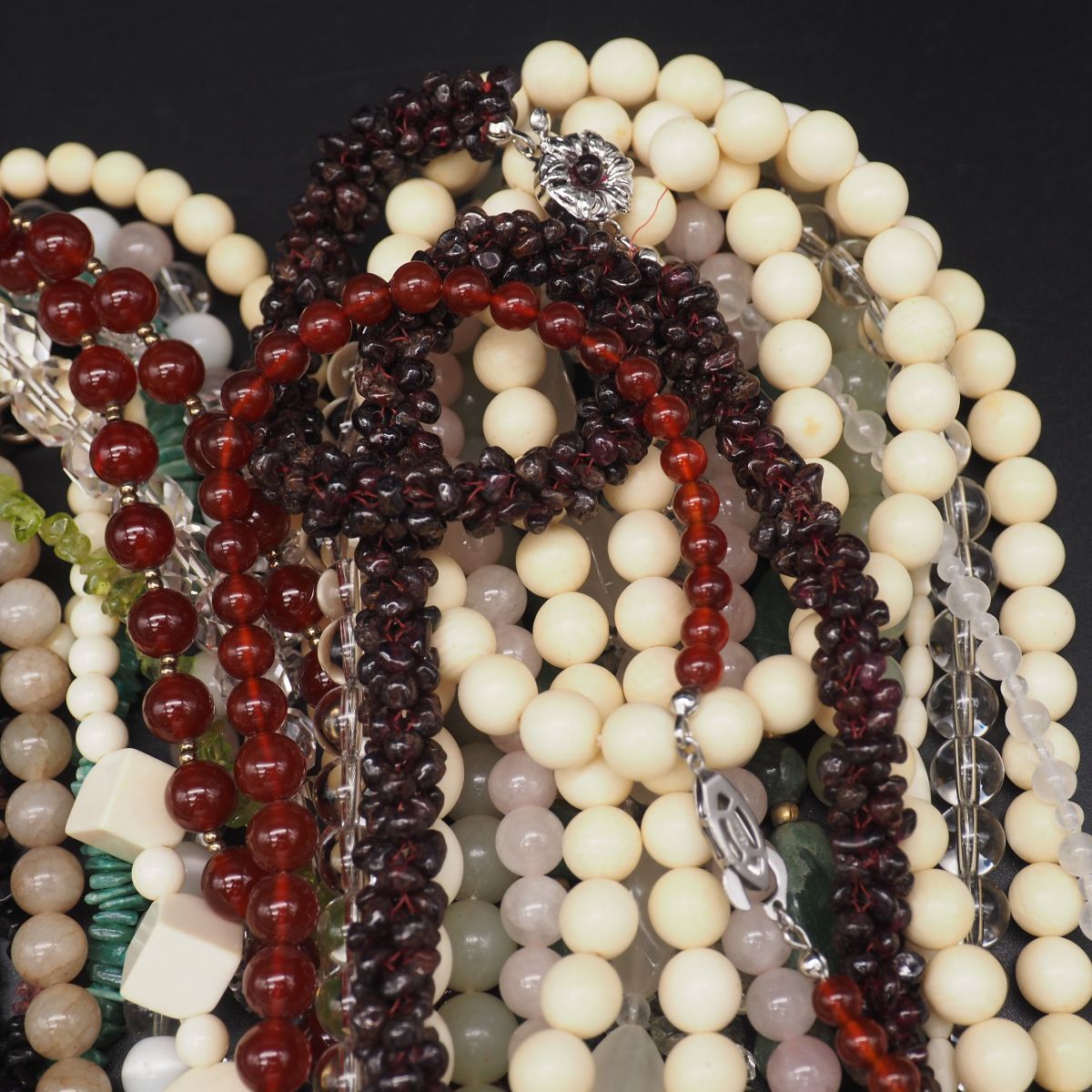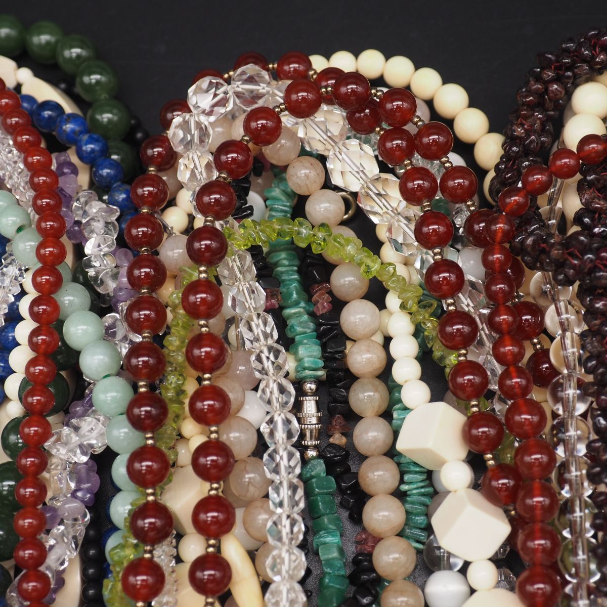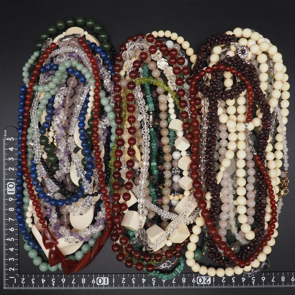(3N0913) 1円 天然石 ネックレス 30本 大量セット ラピスラズリ ペリドット ローズクォーツ 瑪瑙 水晶 シルバー 等 まとめて