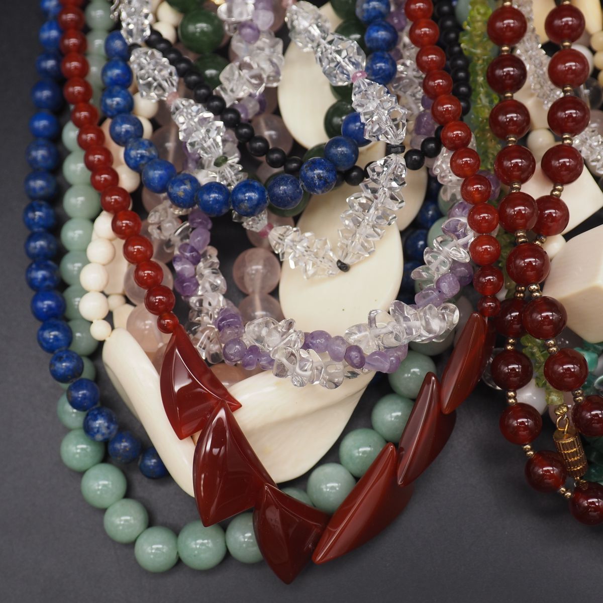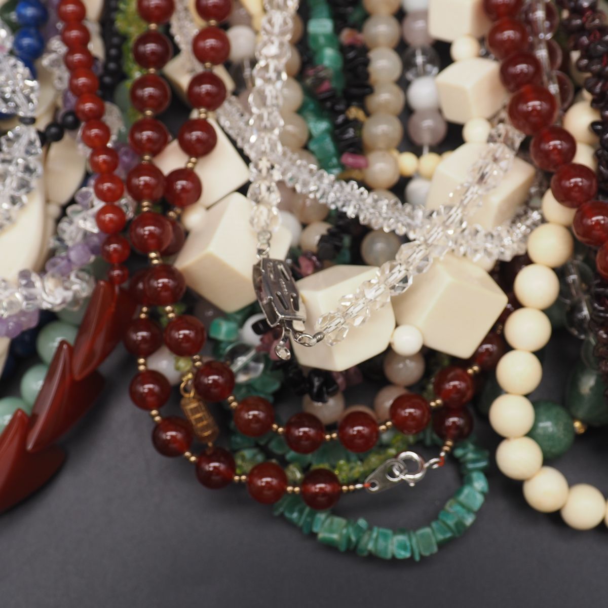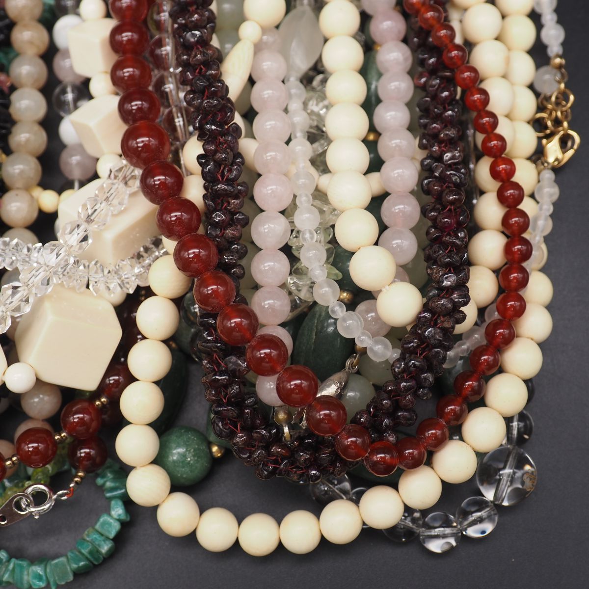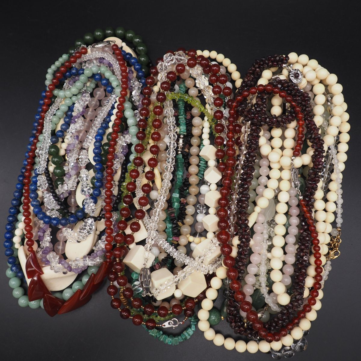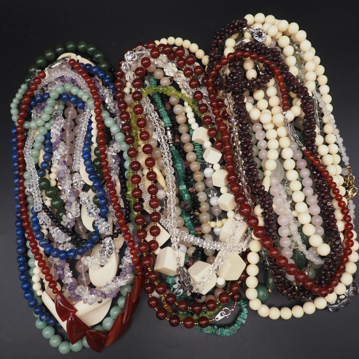 (3N0913) 1円 天然石 ネックレス 30本 大量セット ラピスラズリ ペリドット ローズクォーツ 瑪瑙 水晶 シルバー 等 まとめて
