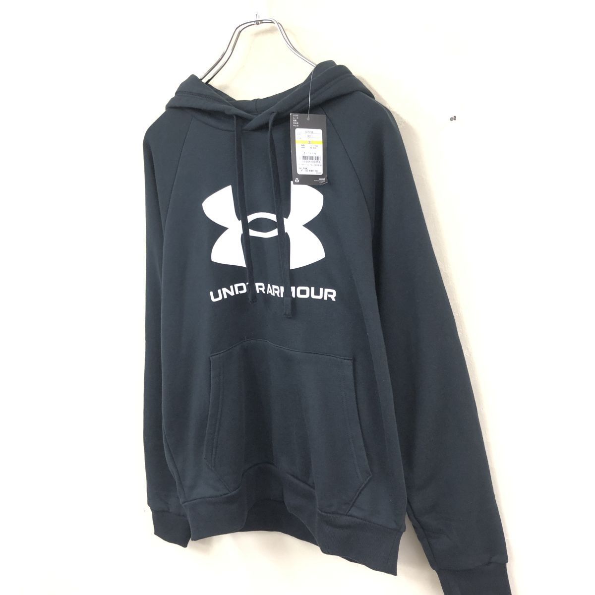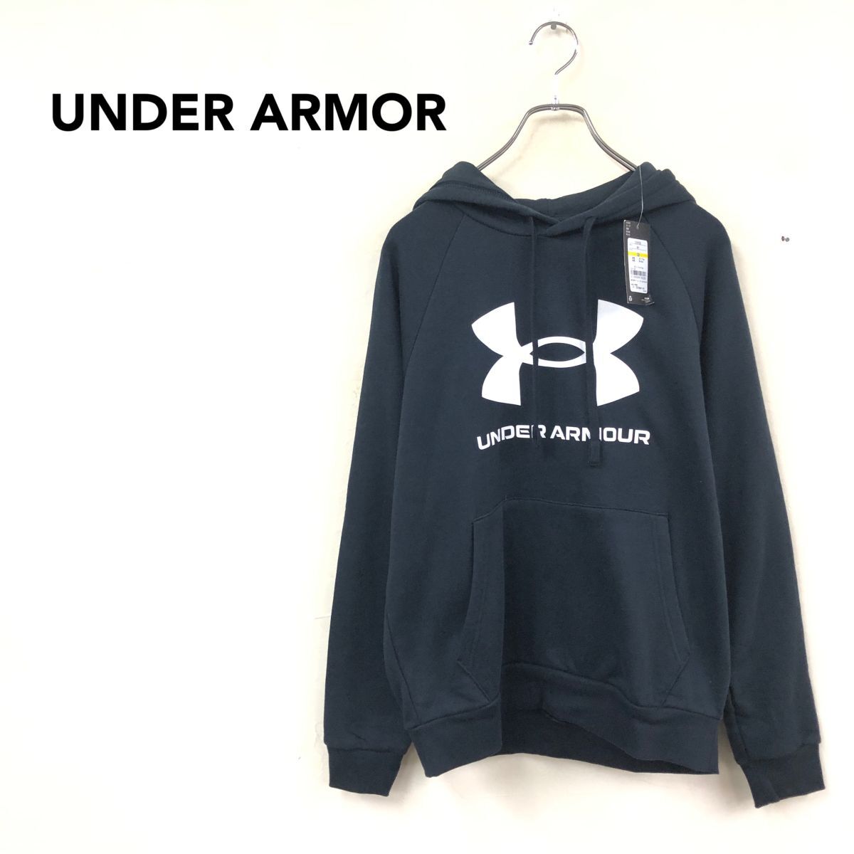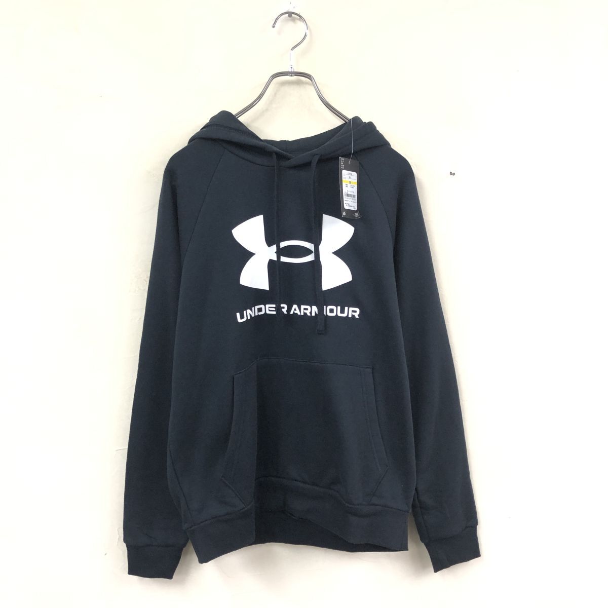 2K2726-O◆良品◆UNDER ARMOR アンダーアーマー 長袖パーカー トレーナー フード付 ブランドロゴ◆sizeMD ブラック コットン ポリエステル