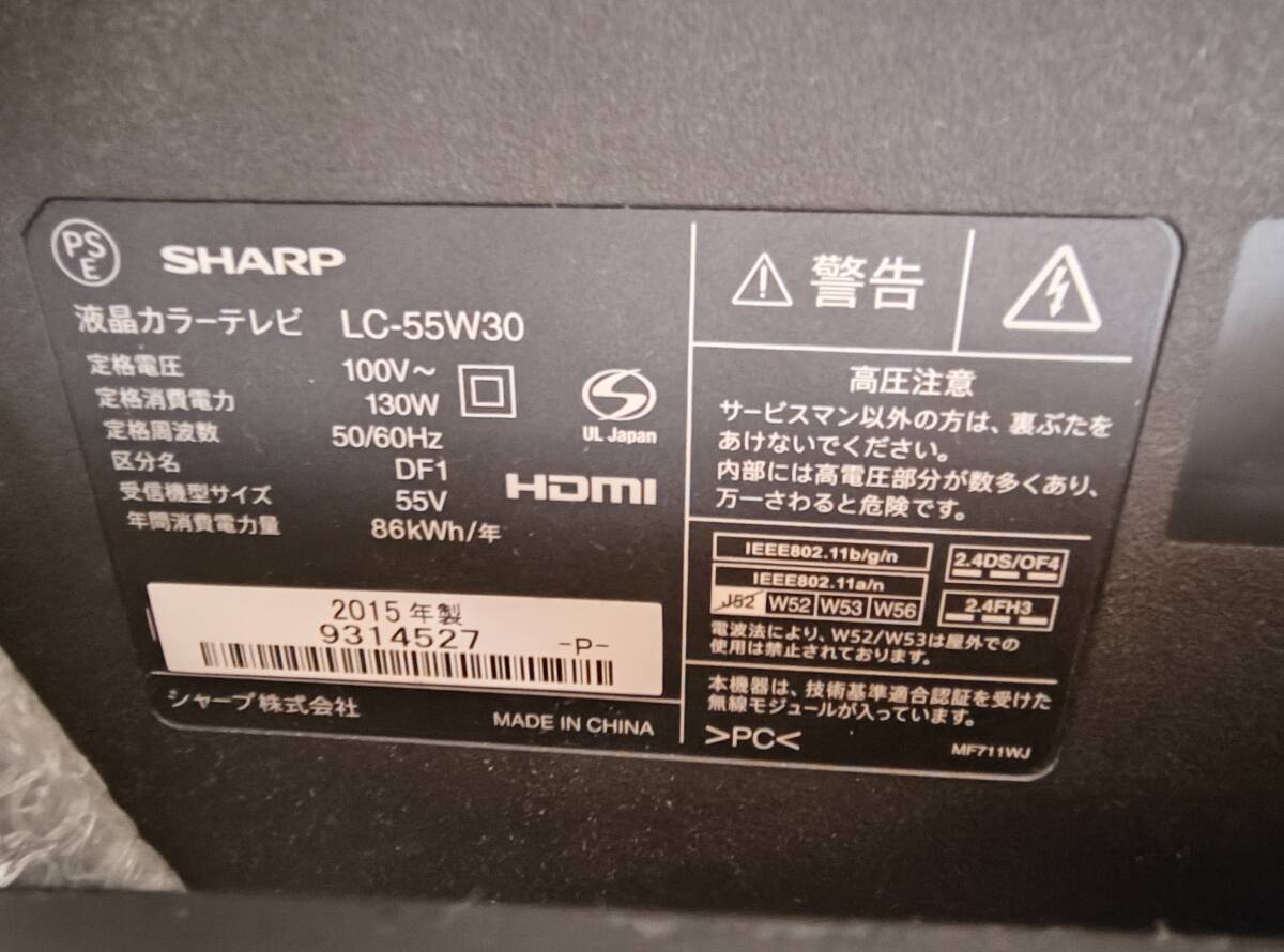 シャープAQUOS LC-55W30 55型テレビ  手渡し限定にて送料無料
