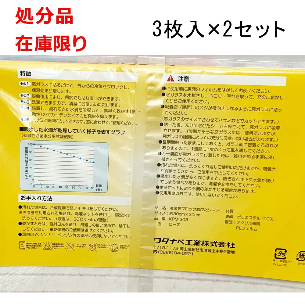 ワタナベ工業 窓ぴたシート KPM-303 ローズ 30cm×30cm 3枚入 2個セット 日本製 処分品