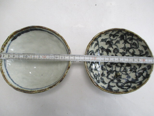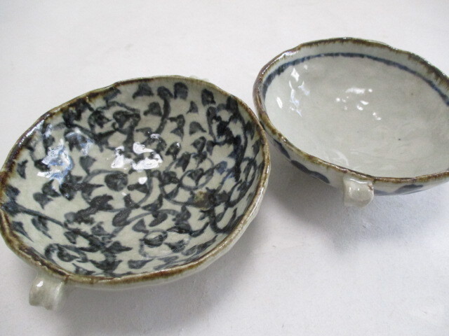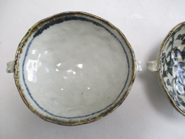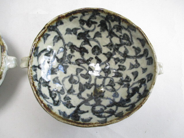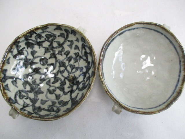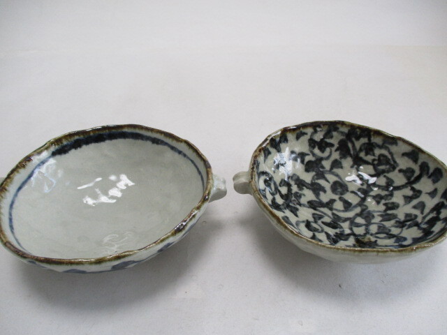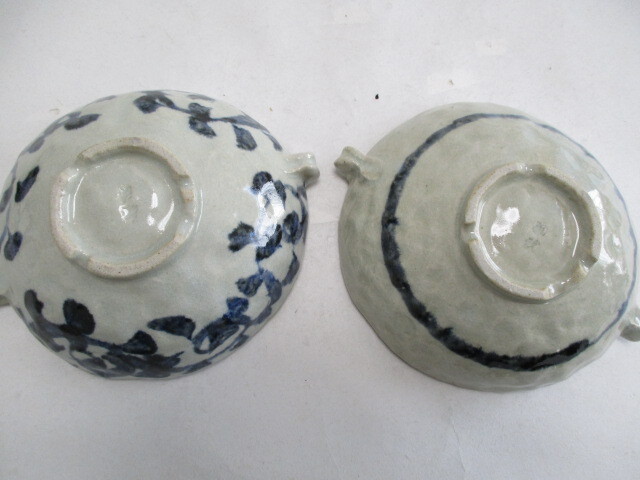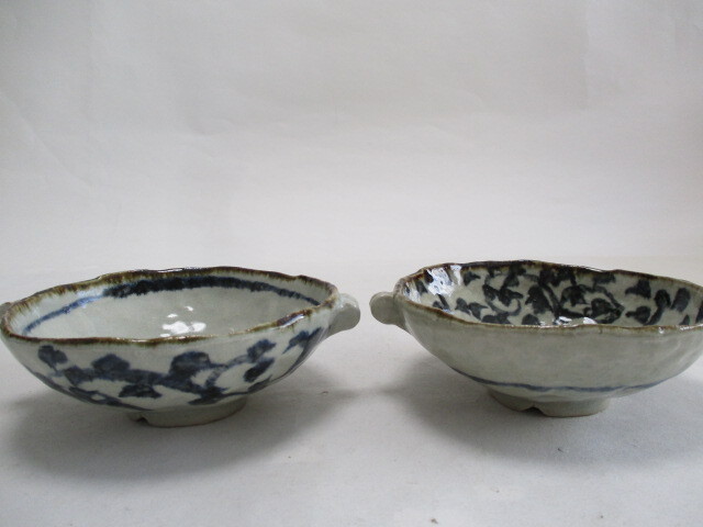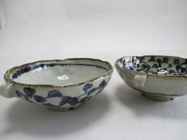 和陶器 織部 染付蛸唐草 手付き鉢 2個 小鉢 中鉢 ボール