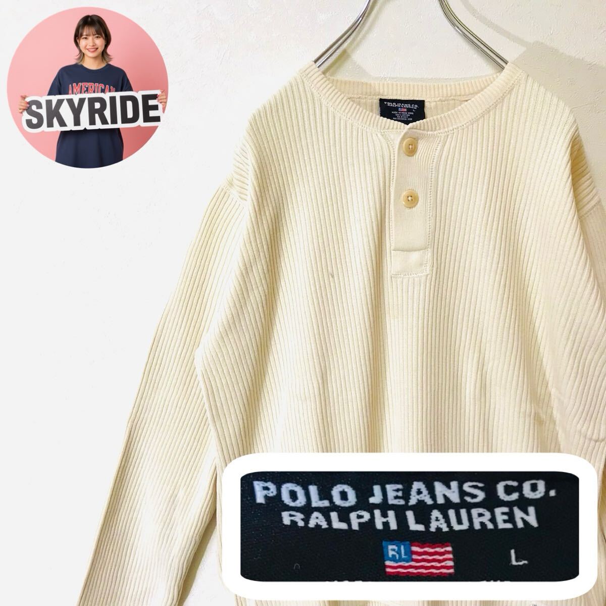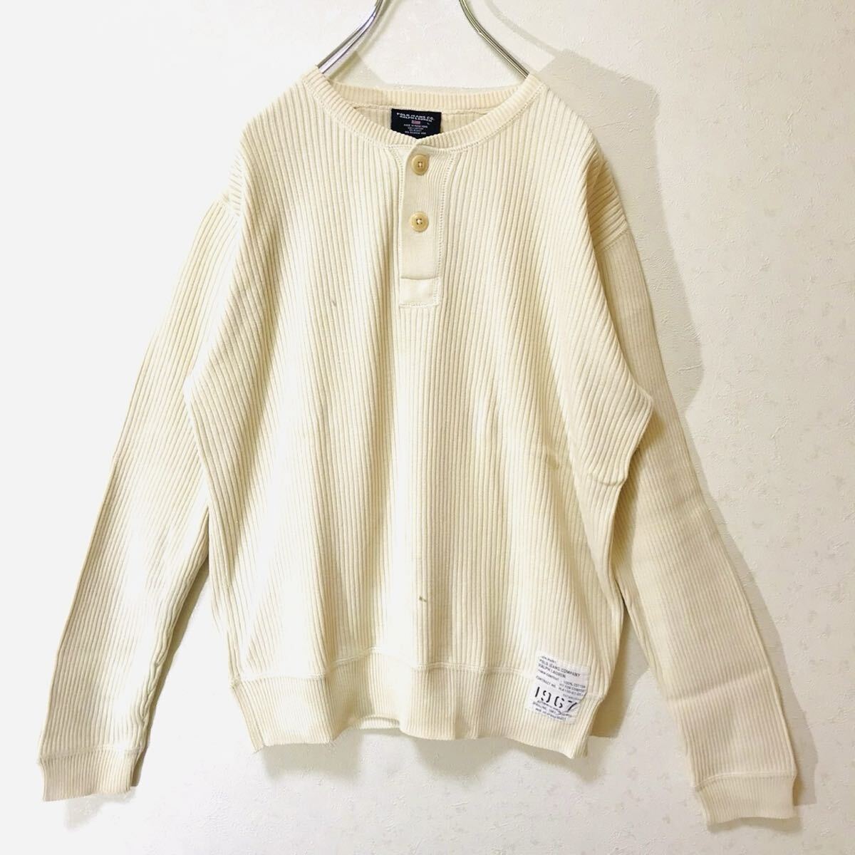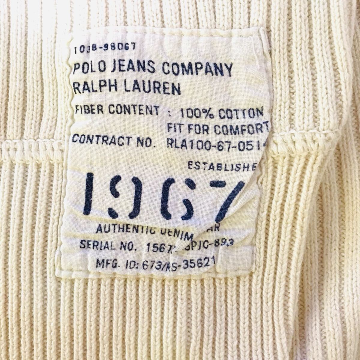 ラルフローレンの中でも希少な「POLO JEANS」ラインから、ヘンリーネックニットの入荷です。クリームカラーの柔らかな風合いに加え、フロント2ボタン仕様でクラシカルな雰囲気を演出。裾には「1967」や「AUTHENTIC DENIM WEAR」のパッチが施され、ヴィンテージ好きに刺さるディテールです。