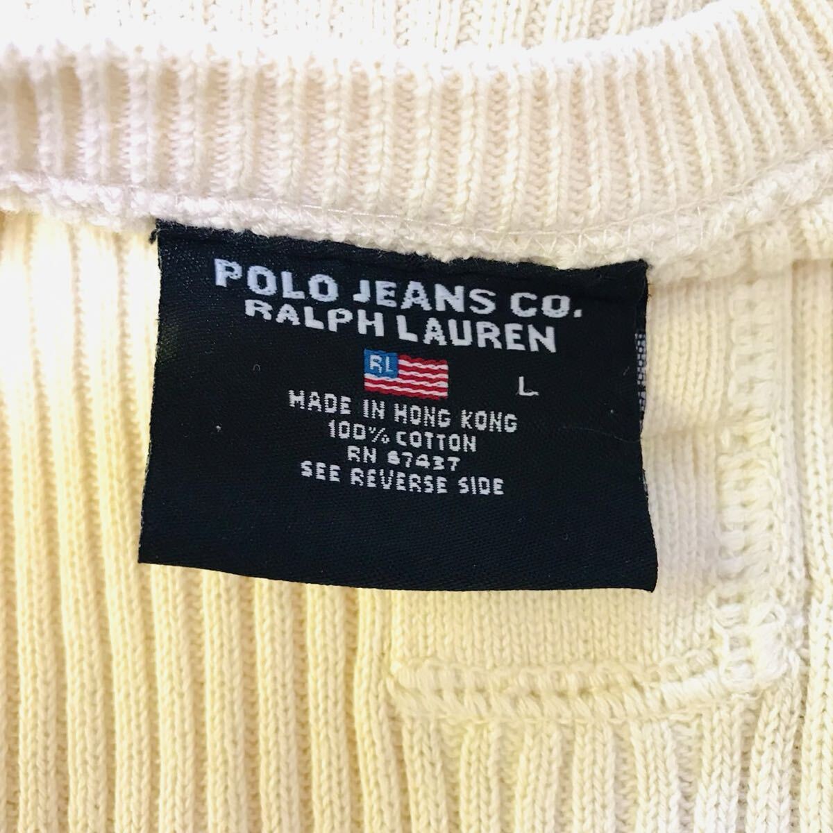 「POLO JEANS CO.」は1996年スタート、2000年代初頭まで展開されたライン。タグに国旗デザインが入っており、この年代と判定。