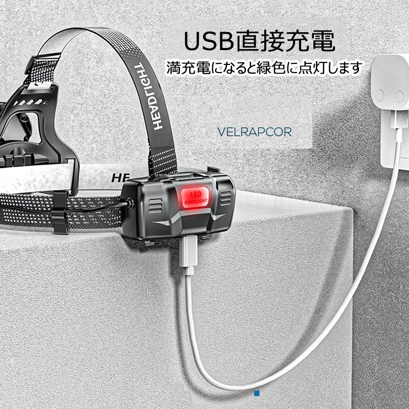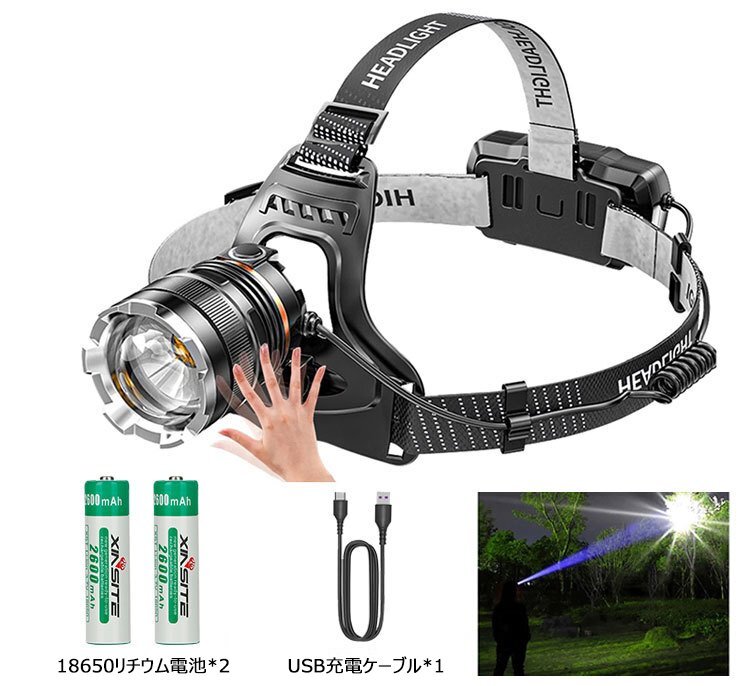新品 LEDヘッドライト USB充電 バッテリー内蔵 1600ルーメン センサー付 4モード 角度調節可 高輝度 超強力 明るい 1203
