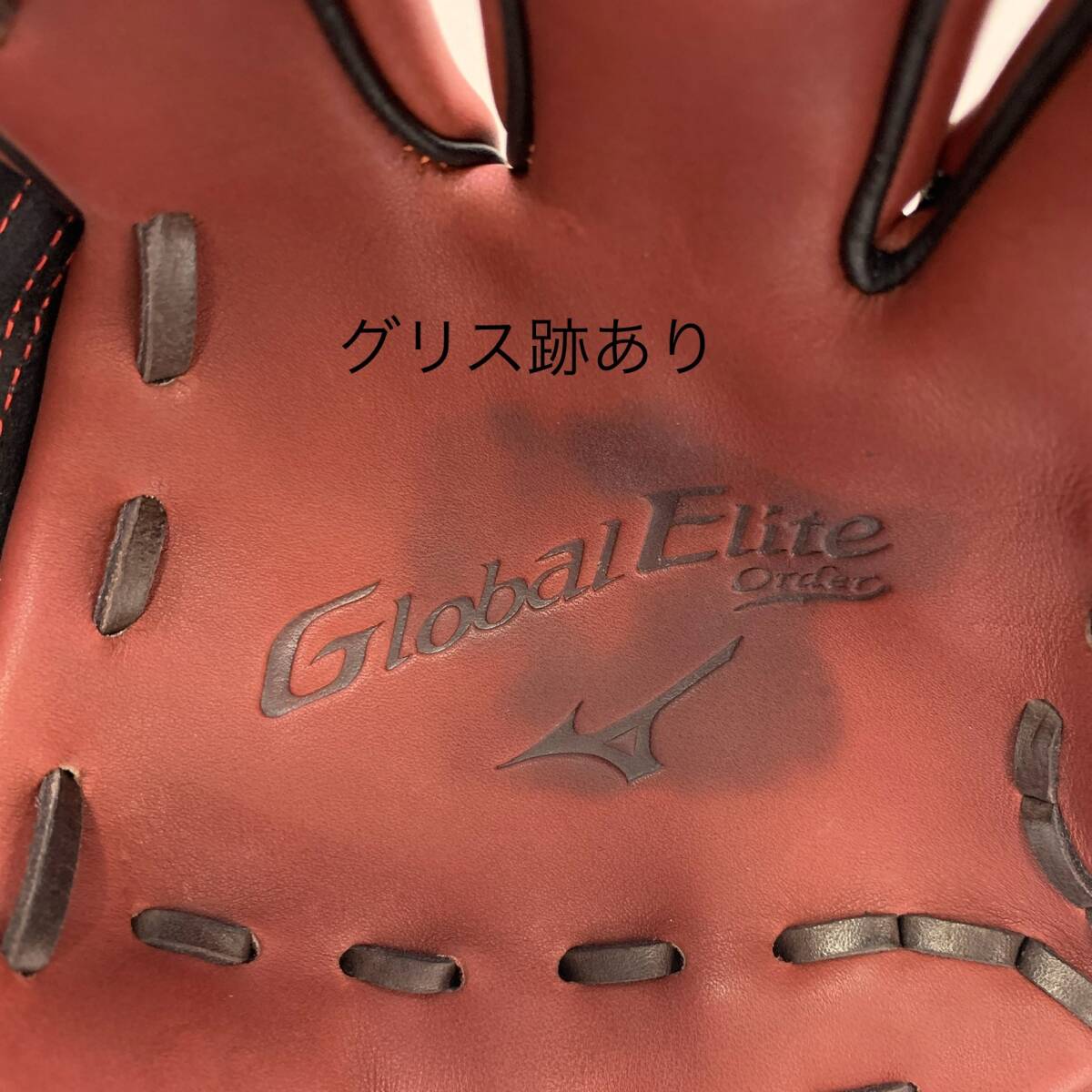 ■備考:中古品ですが全体的に使用感の少ない商品です。細かい傷、色あせ、汚れ等がある場合がございますが、状態は良く破れや穴あきは見受けられません。詳しい状態は画像にてご確認ください。見落としの傷や汚れ等がある場合がございます。ご了承の上ご購入下さい。型は付いていません。硬いです。捕球面にグリスが滲み出ています。