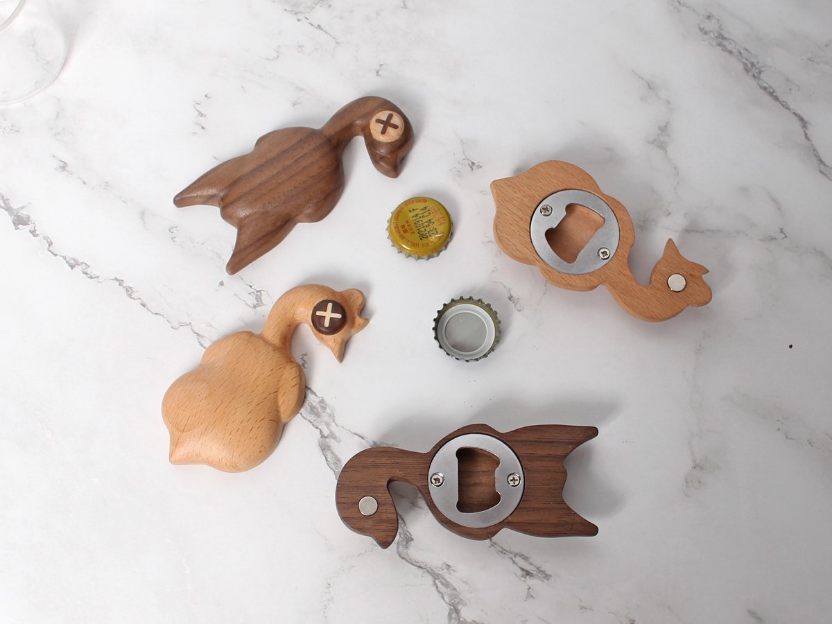 商品説明 鳥の丸焼きをモチーフとした、木製ボトルオープナー(栓抜き)