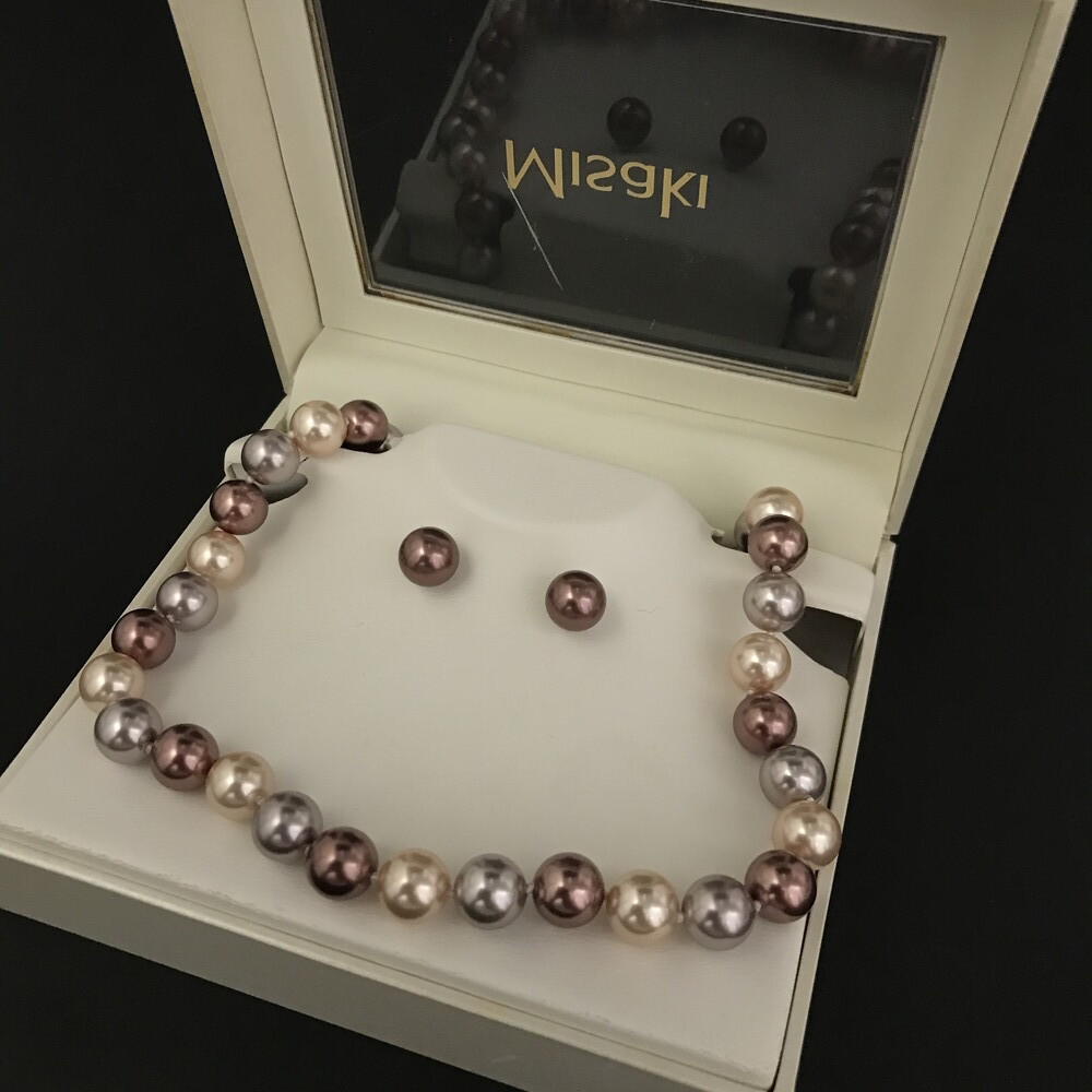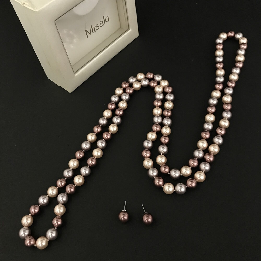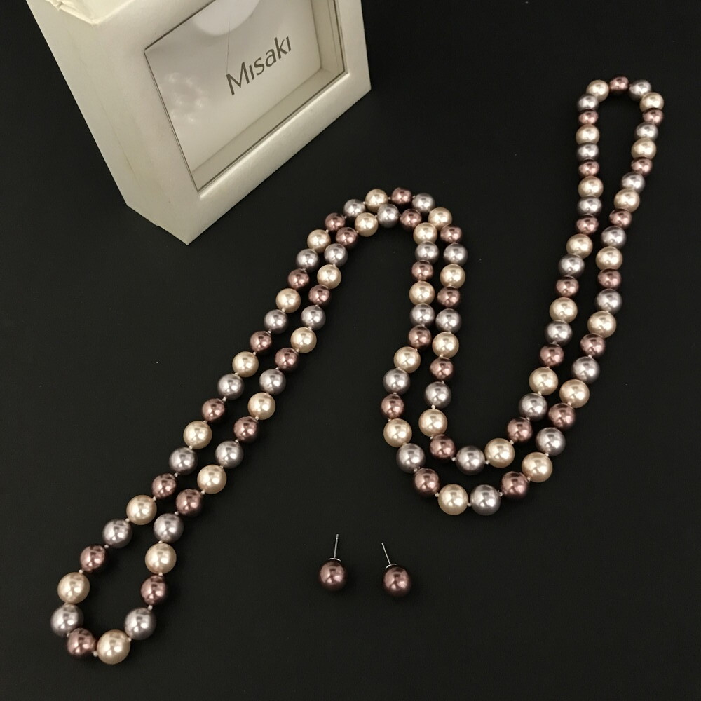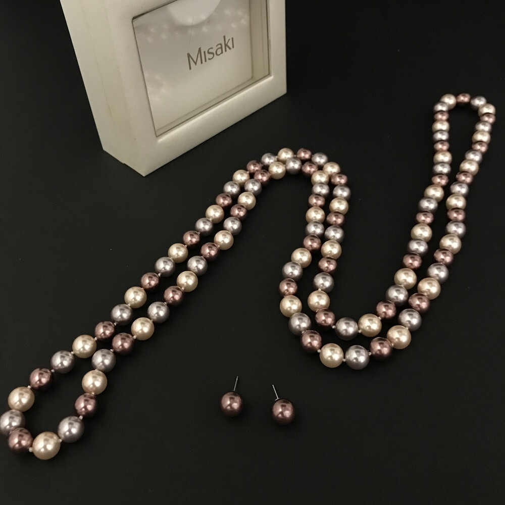 1円 極美品 MISAKI ミサキ パール 本真珠 ピアス ネックレス アクセサリー 2点セット 9mm マルチカラー /ZX0666