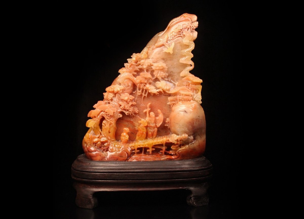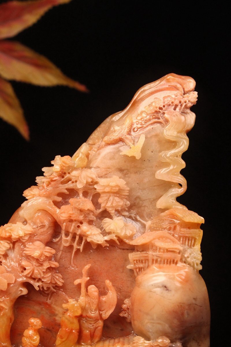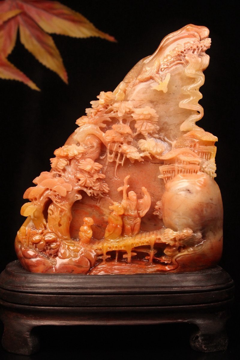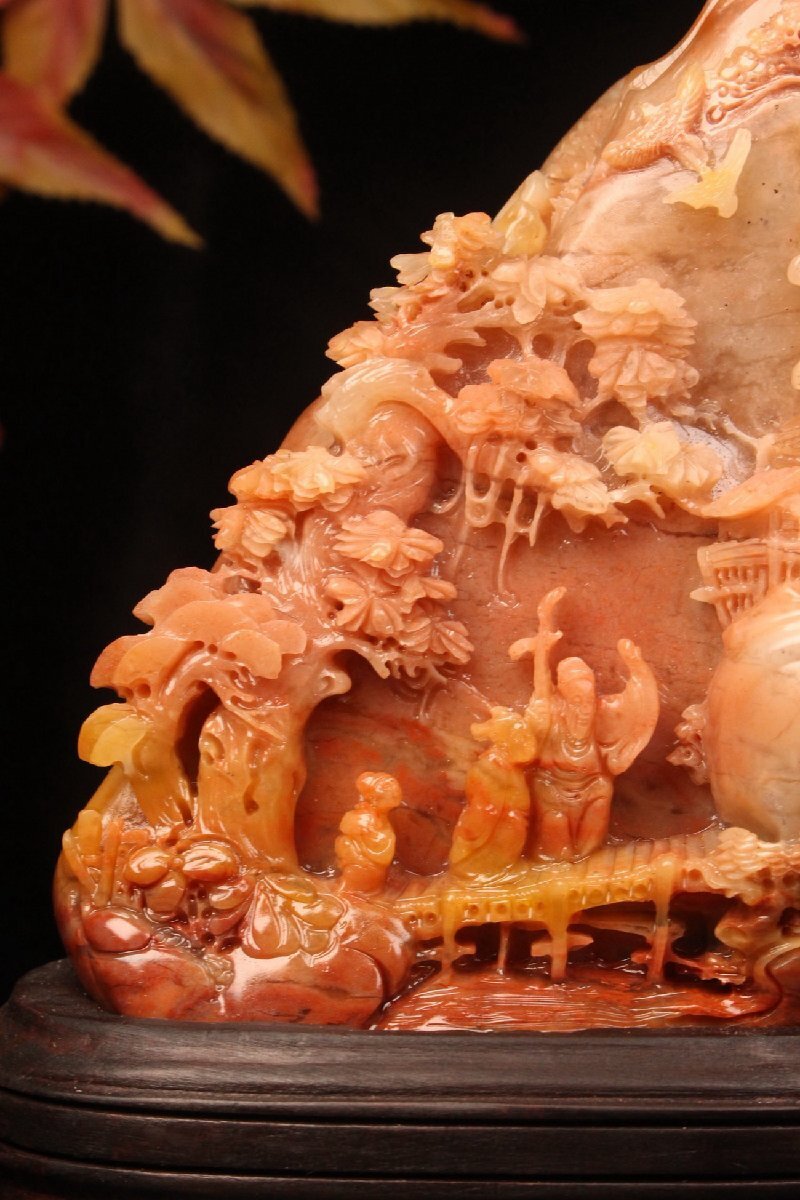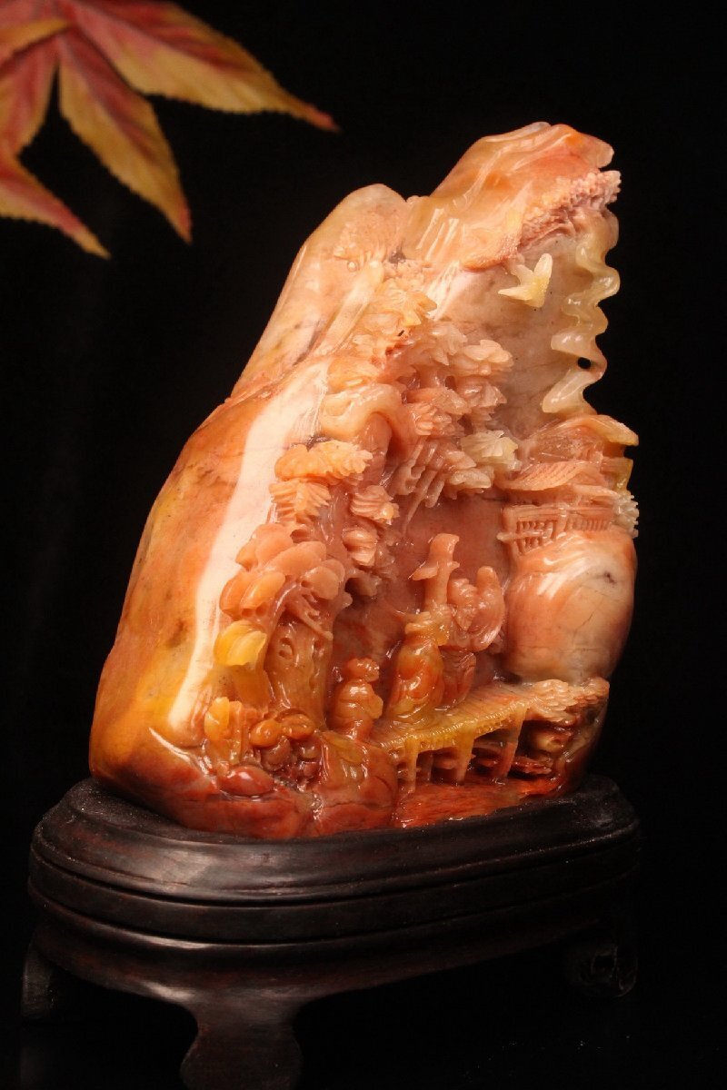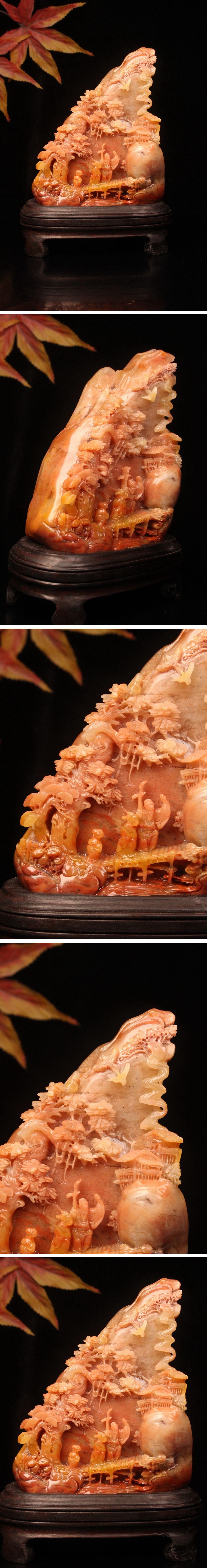 【清】某有名オークション購入 時代物 寿山石 山水人物紋彫り物 古置物 古擺件 古美術 時代コレクション7L9-YH3
