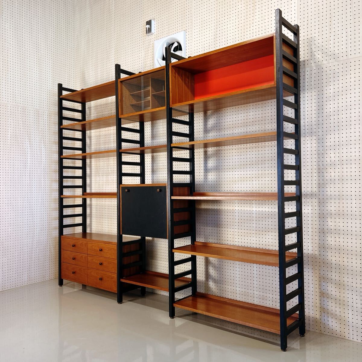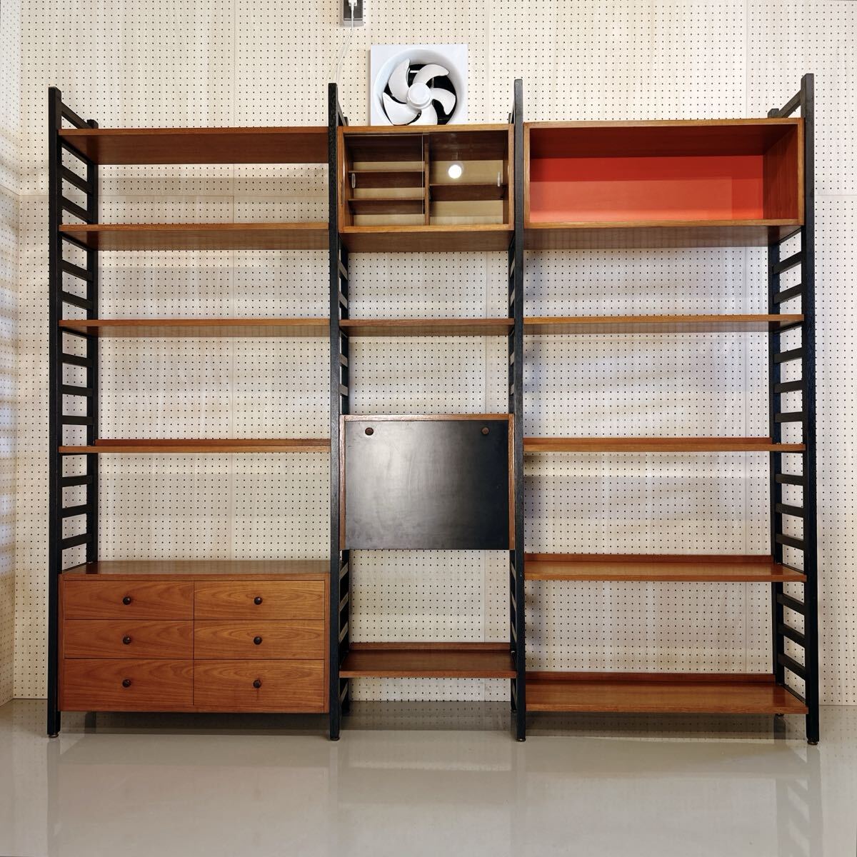 ヴィンテージ70年代頃の、日本製ヴィンテージチーク材ユニットシェルフ3列です。