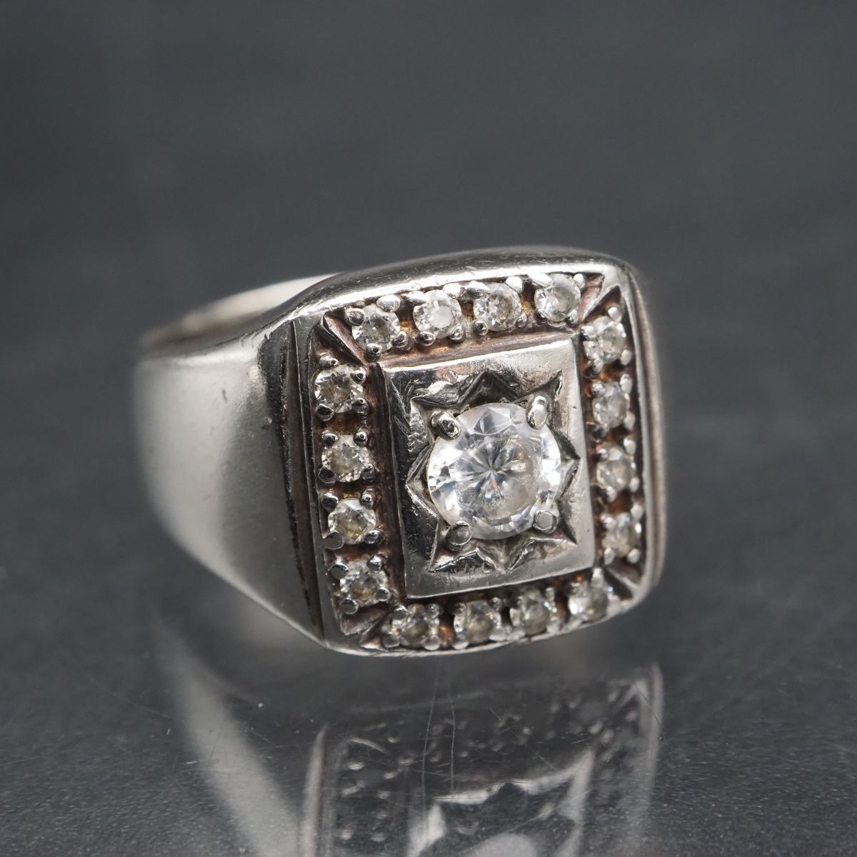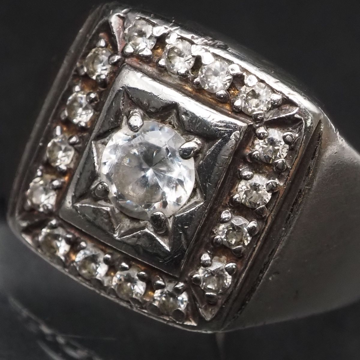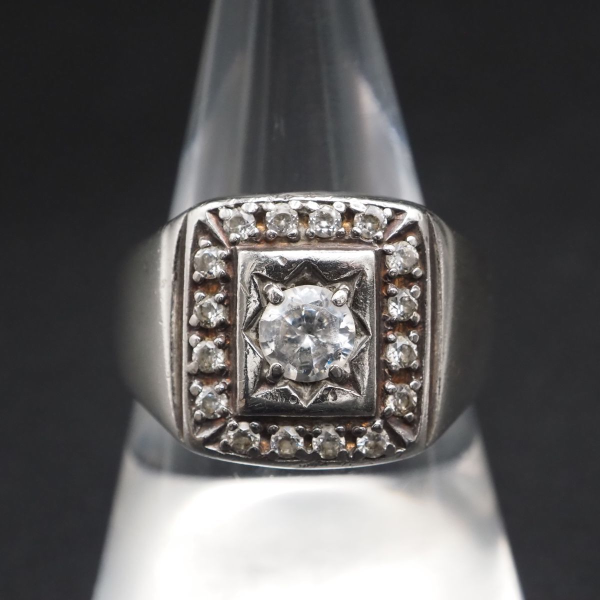 F833 ダイヤモンド風 SILVER刻印 リング ラインストーン デザイン シルバー 指輪 20号