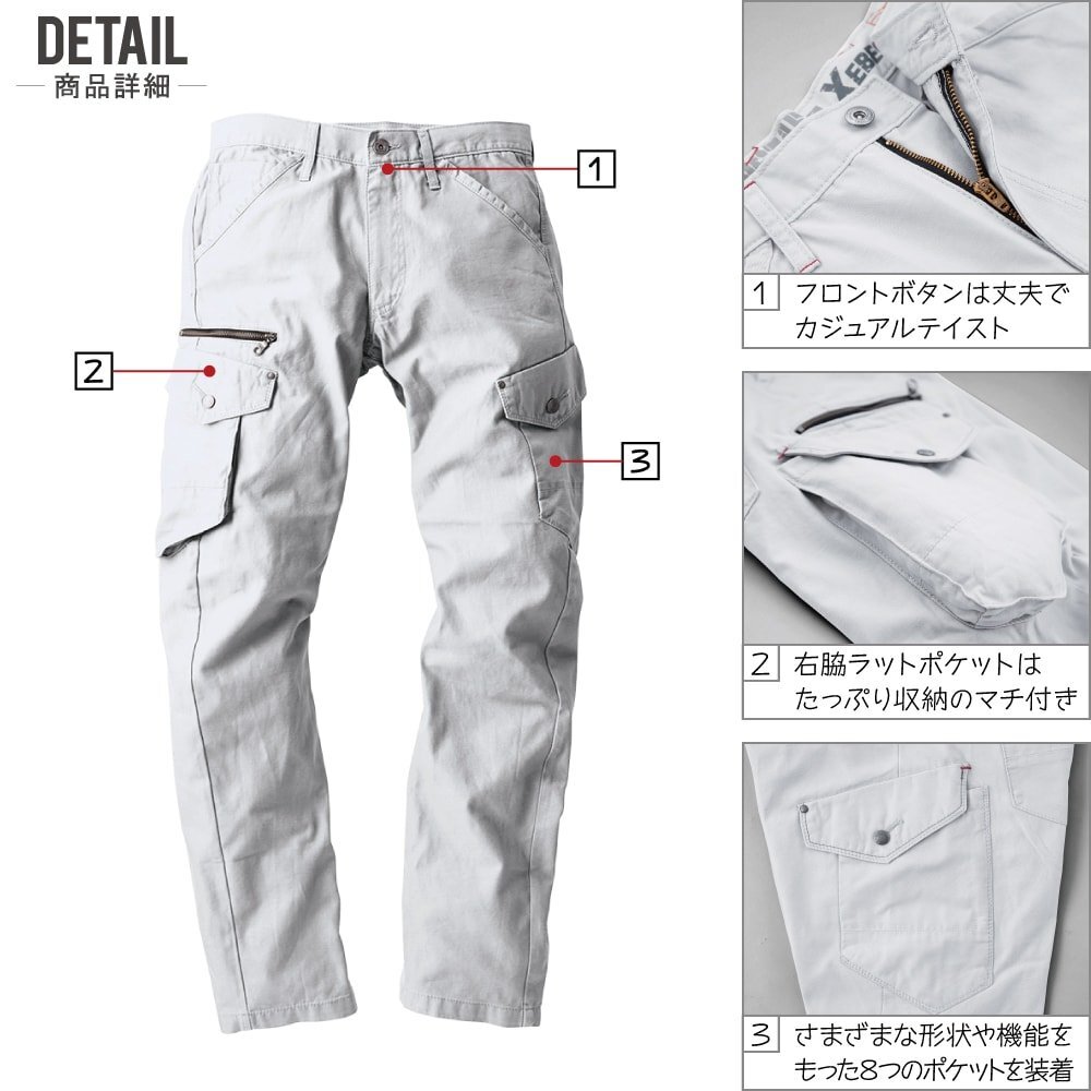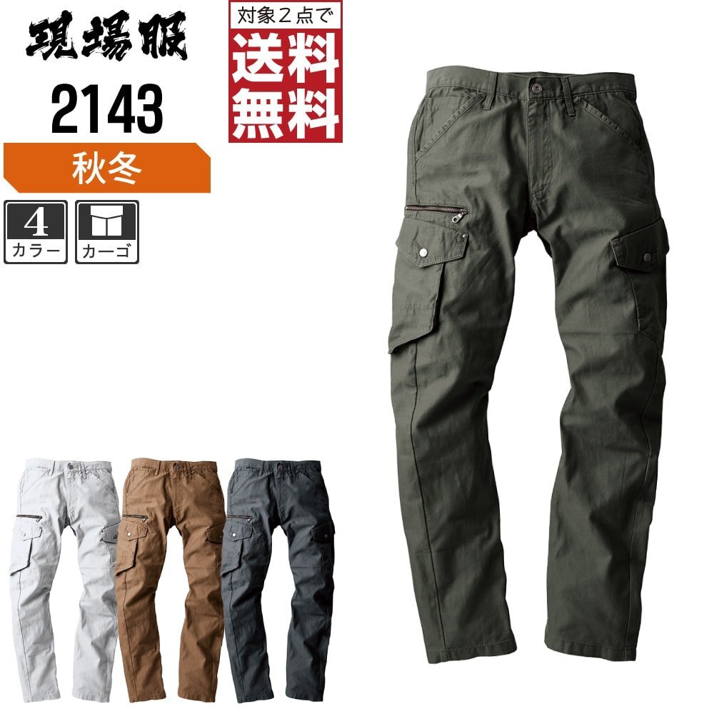 ジーベック 秋冬 カーゴパンツ 肌ざわりの良い綿素材 現場服 2143 色:シルバーグレー サイズ:LL ★ 対象2点 送料無料 ★