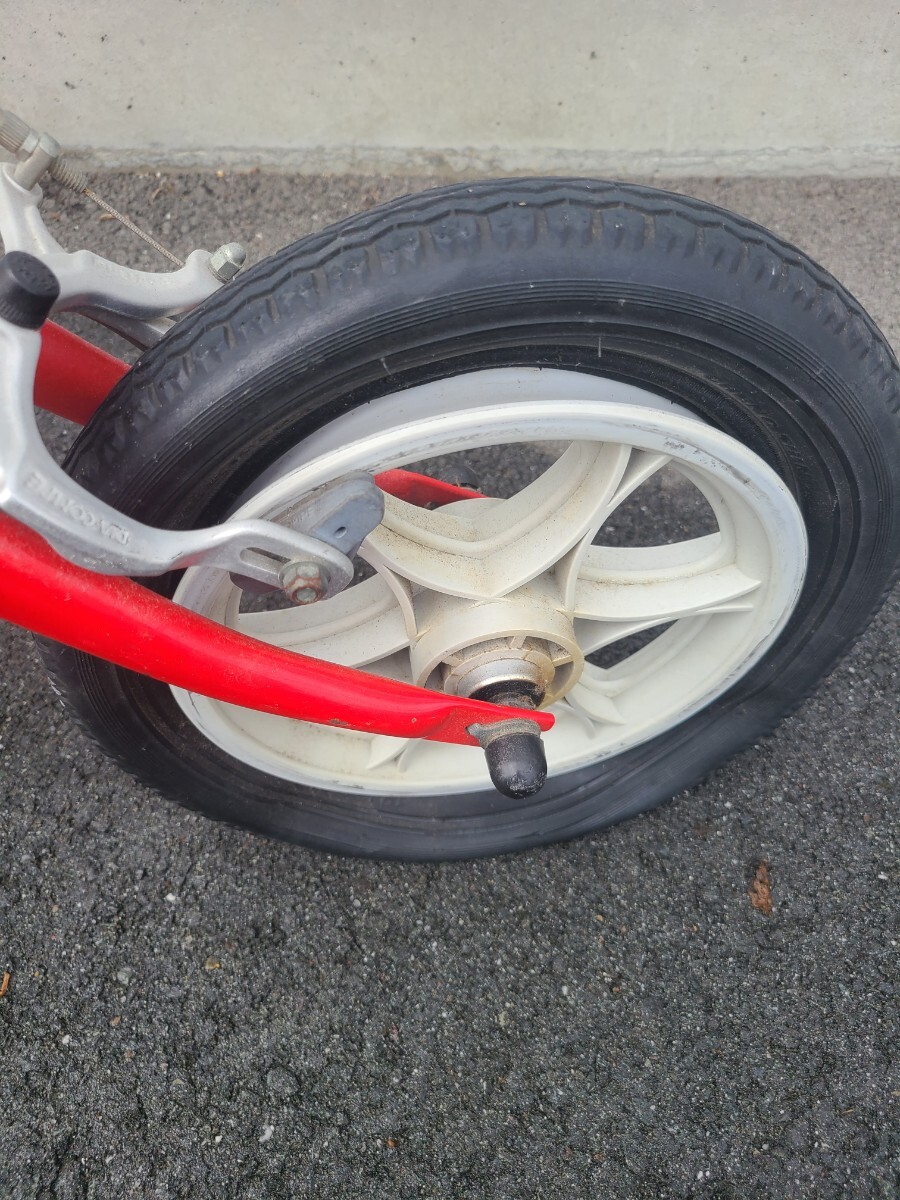 フロントタイヤがパンクしていてタイヤにひびがあるので交換が必要です。