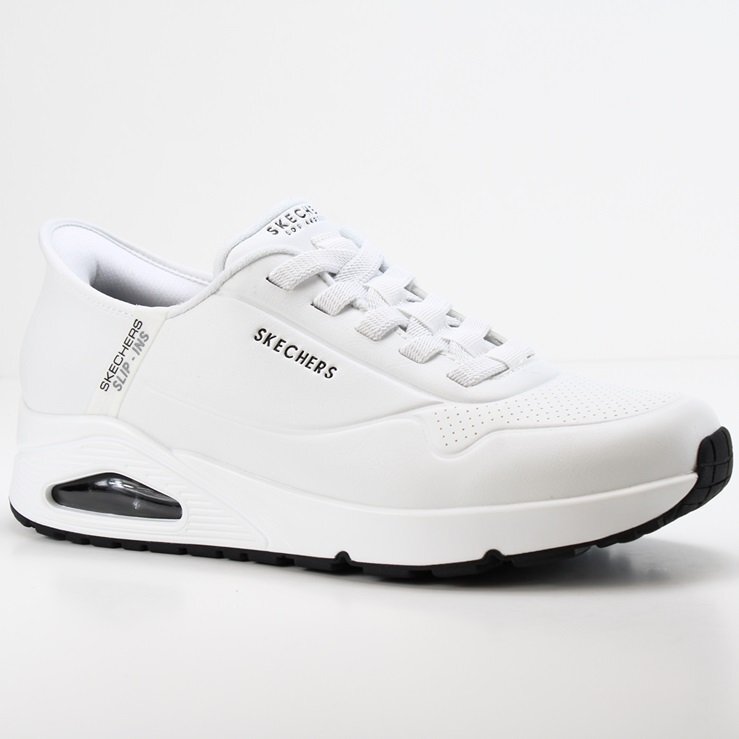 | スリップインするだけ 手を使わずに履けるスケッチャーズスリップ・インズは、かつてないほど履きやすいシューズです。 かがむ必要はありません。脱ぎ履き簡単。 立ったままハンズフリーで靴の脱ぎ履きが可能なSLIP-INSモデル。アイコニックな人気アイテムをさらに快適で履きやすくアレンジしたファッションスニーカー。ストレッチレースを配した合成デュラレザーのアッパー、クッション性のある低反発素材のSkechers Air-Cooled Memory Foam(TM)(スケッチャーズ エアクールドメモリーフォーム)インソール、ビジブル構造のSkech-Air(TM)(スケッチエア)エアバッグミッドソールが特長です。 | |