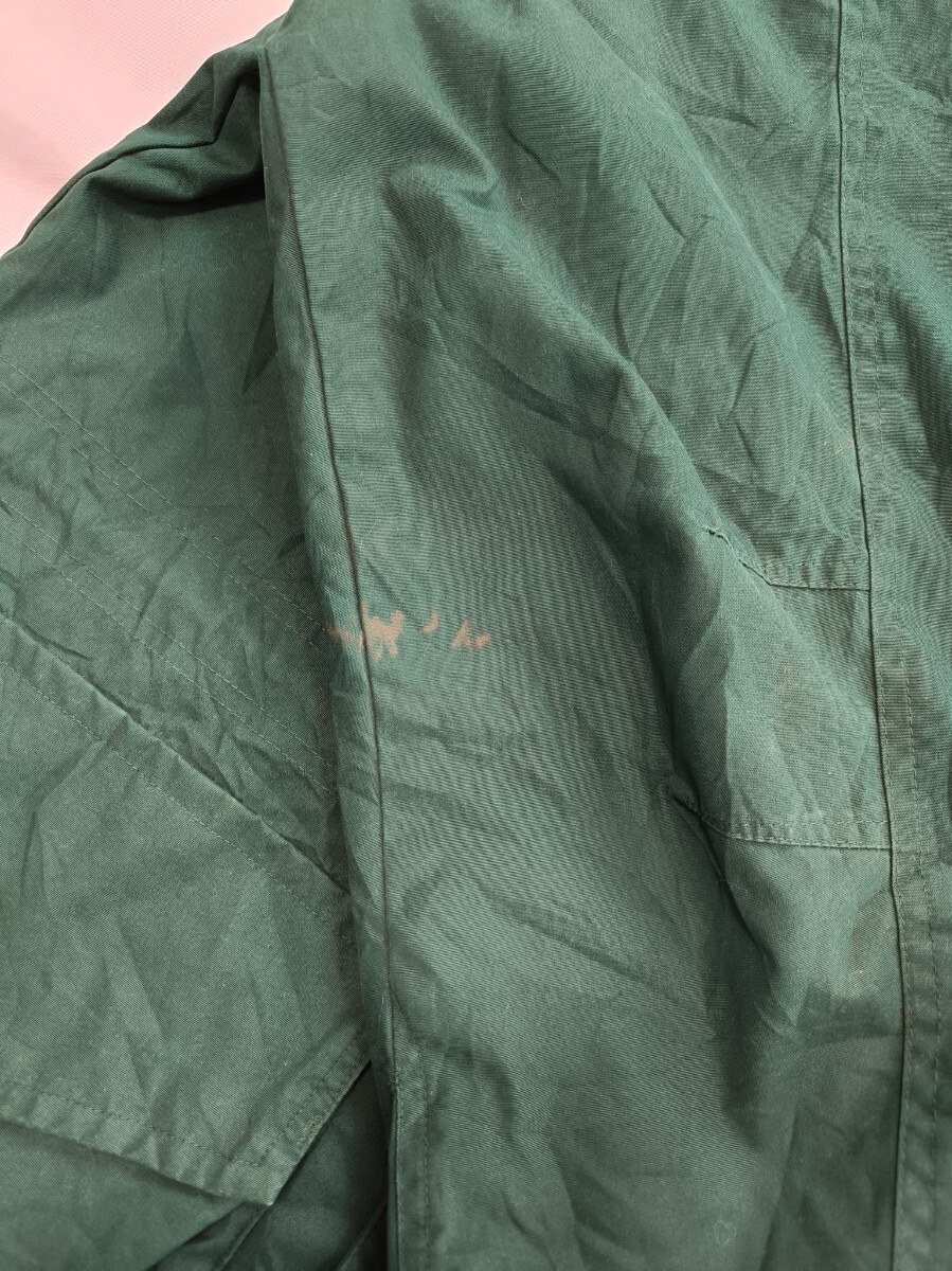 A,ダメージはお写真をご覧ください。布製品の洗濯は現地での水通ししか行っていない為、落ちるかどうかはわかりかねます。