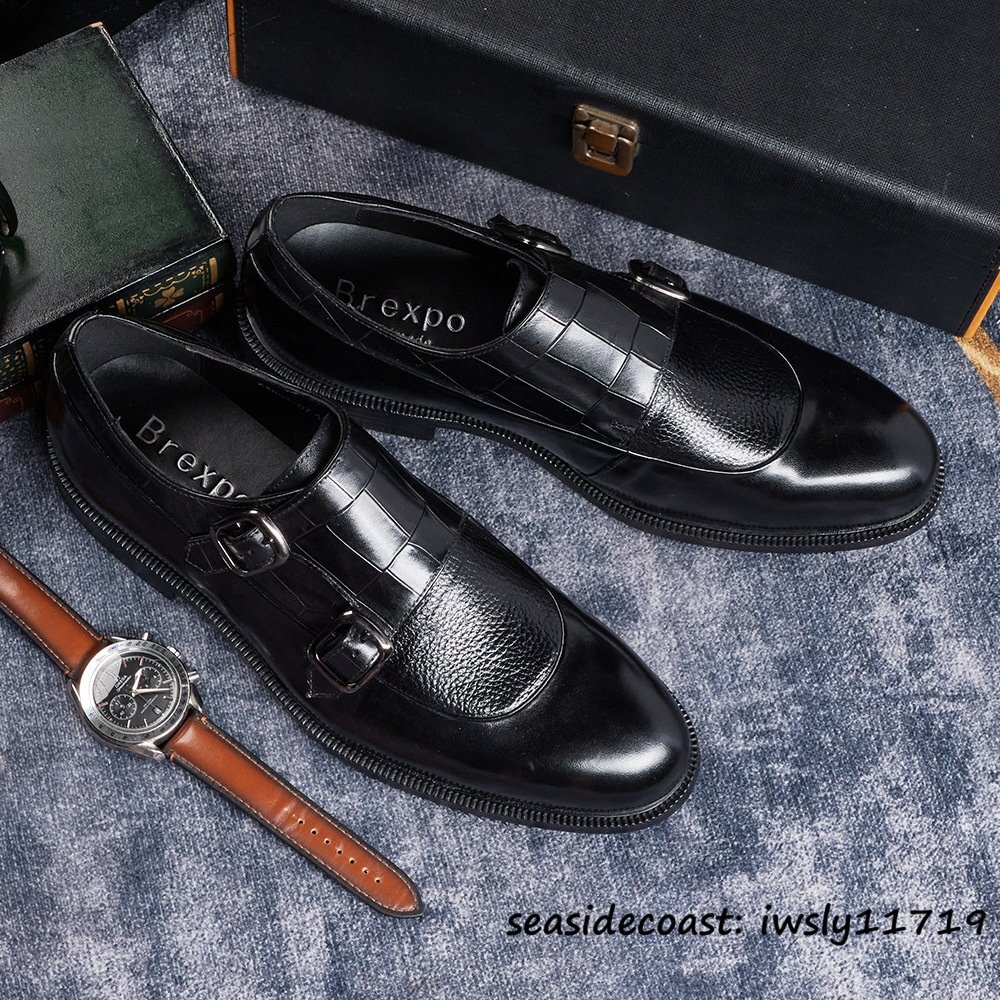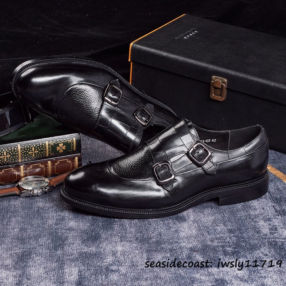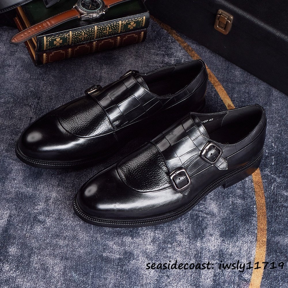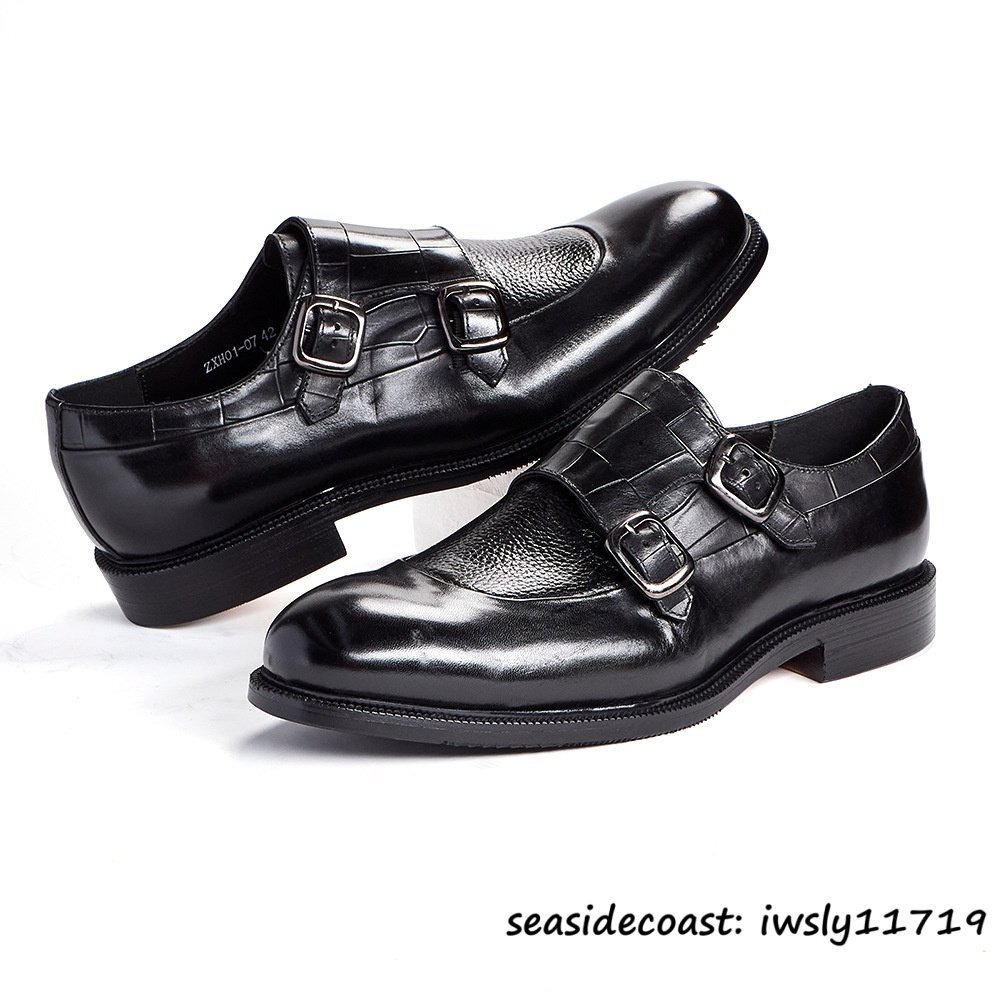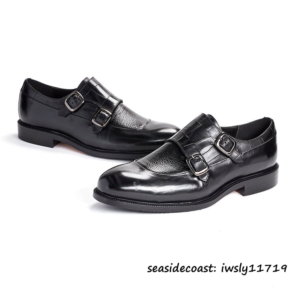 極美品◆定価9万 本革 レザーシューズ 最高級牛革 ビジネスシューズ 職人手作り 革靴 ダブルモンクストラップ ドレス 個性 ブラック 26.0cm