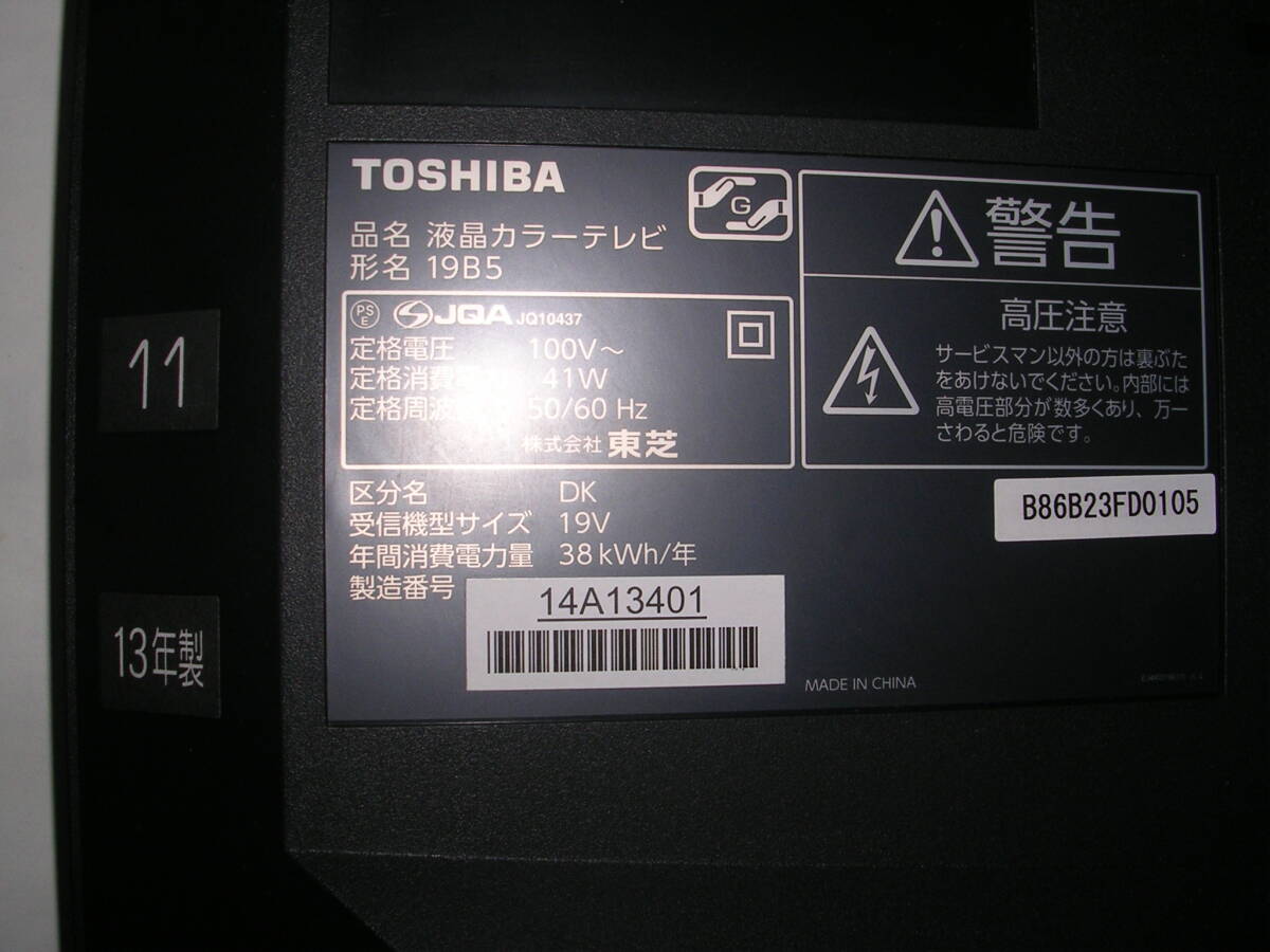 ◎◎液晶カラーテレビ【 TOSHIBA 東芝 19型液晶テレビ REGZA 19B5 付属4点】良い状態の中古品!