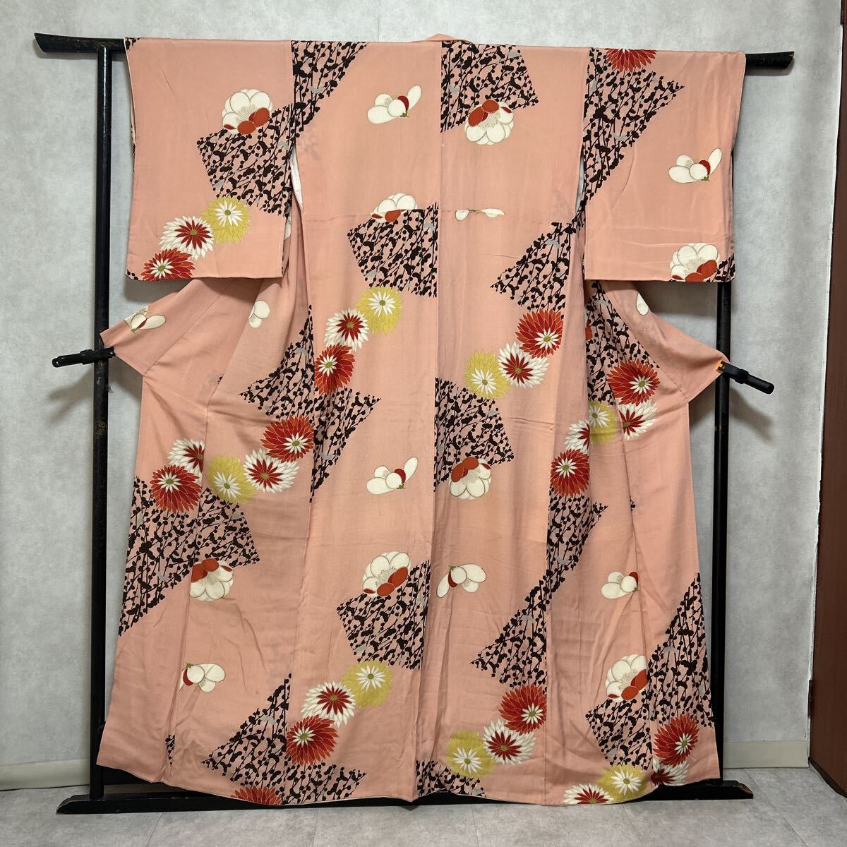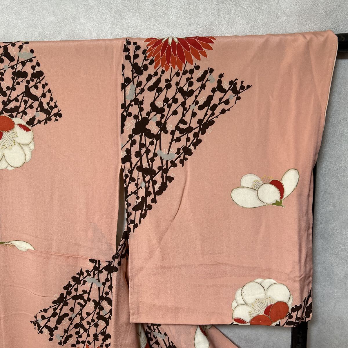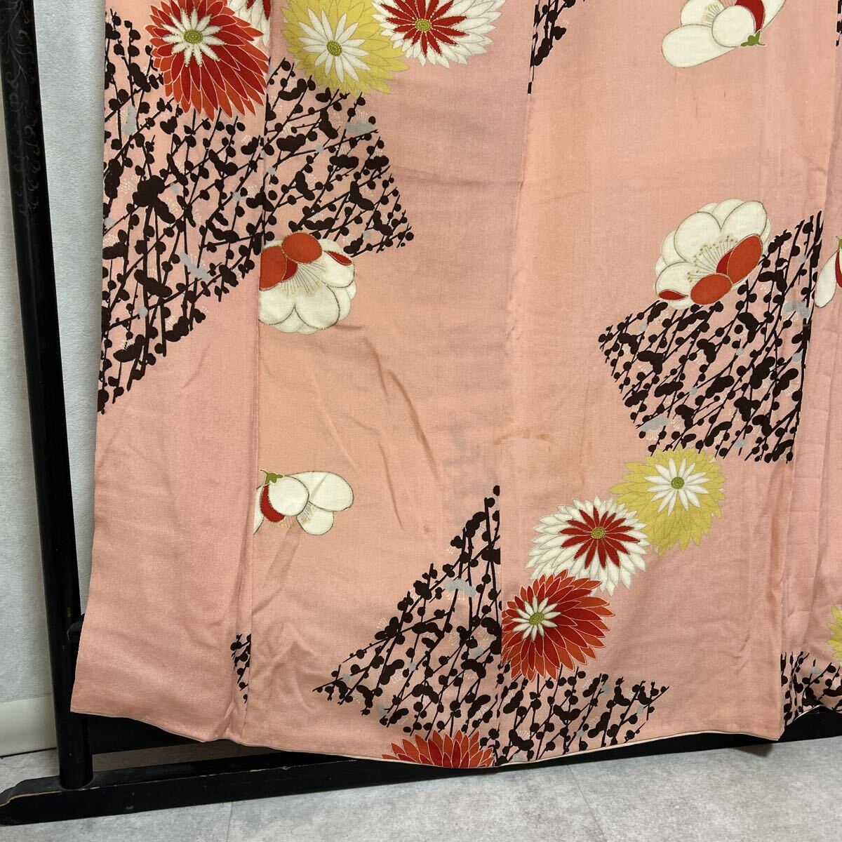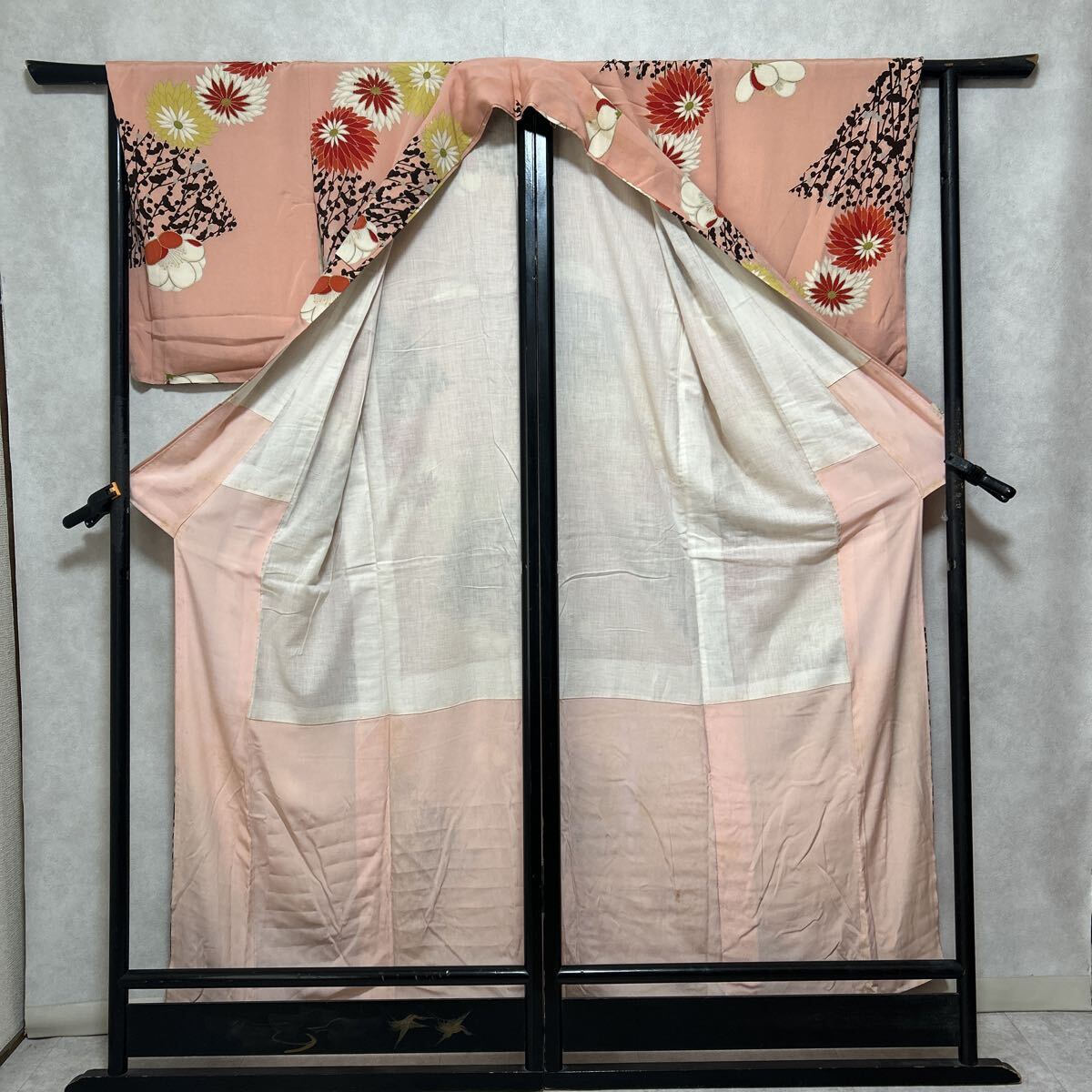 アンティーク 着物 正絹 昭和レトロ 大正ロマン モダン 和洋折衷コーデ リメイク ピンク 花 け29-7k