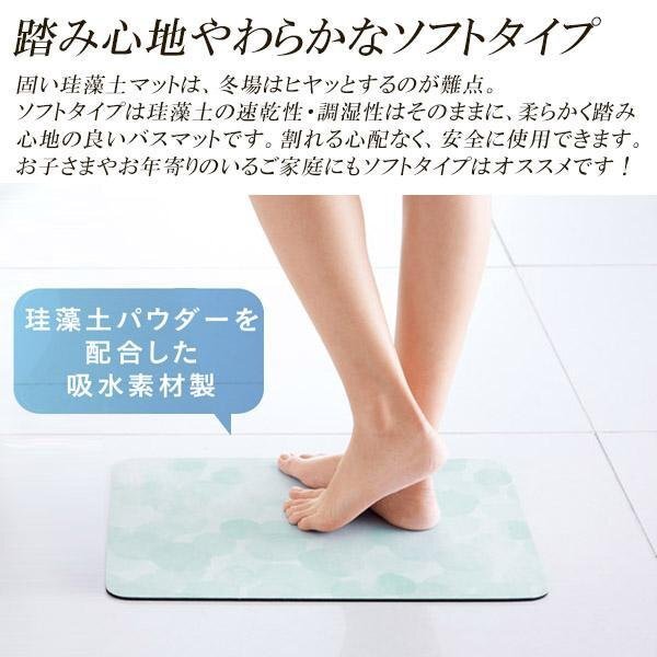 ソフトタイプは珪藻土の速乾性・調湿性はそのままに、柔らかく踏み心地の良いバスマットです。