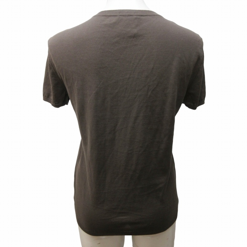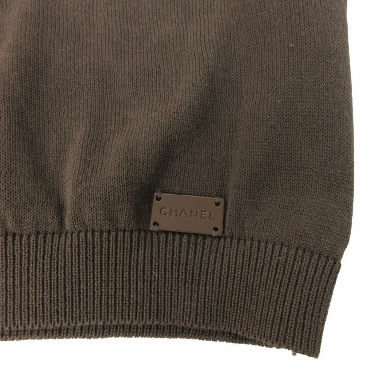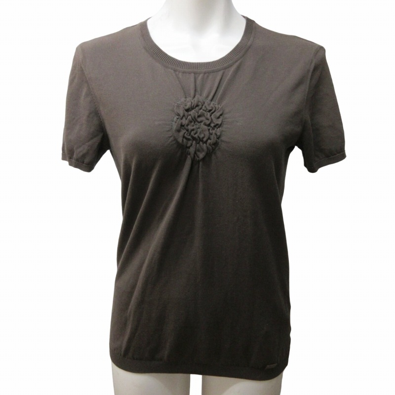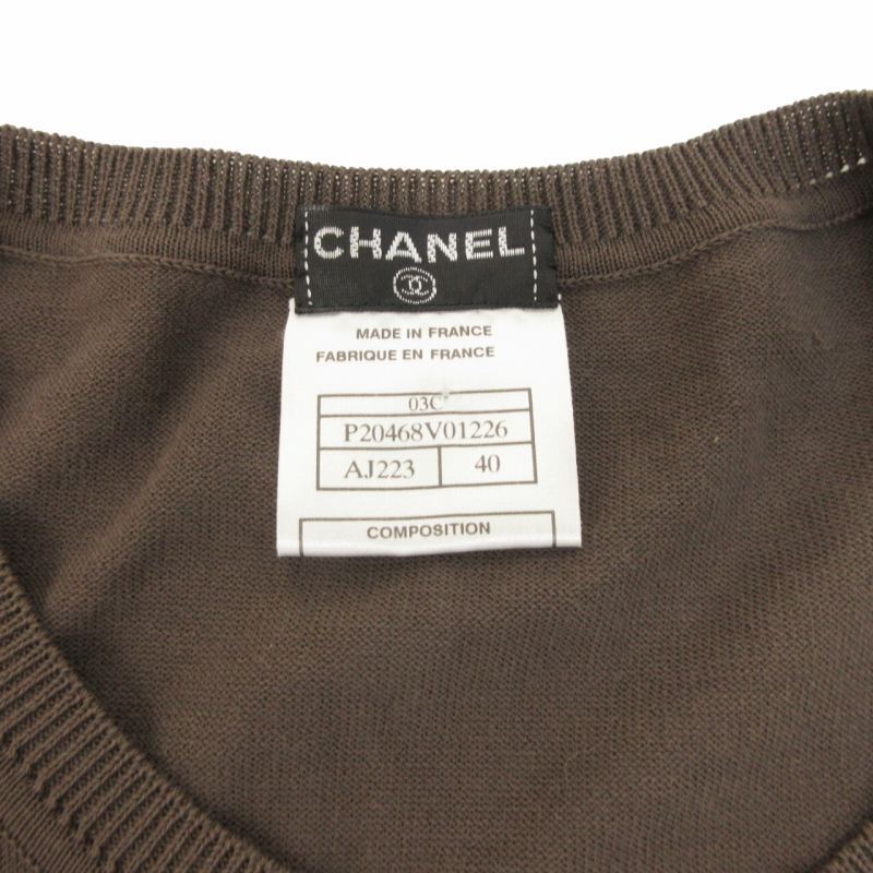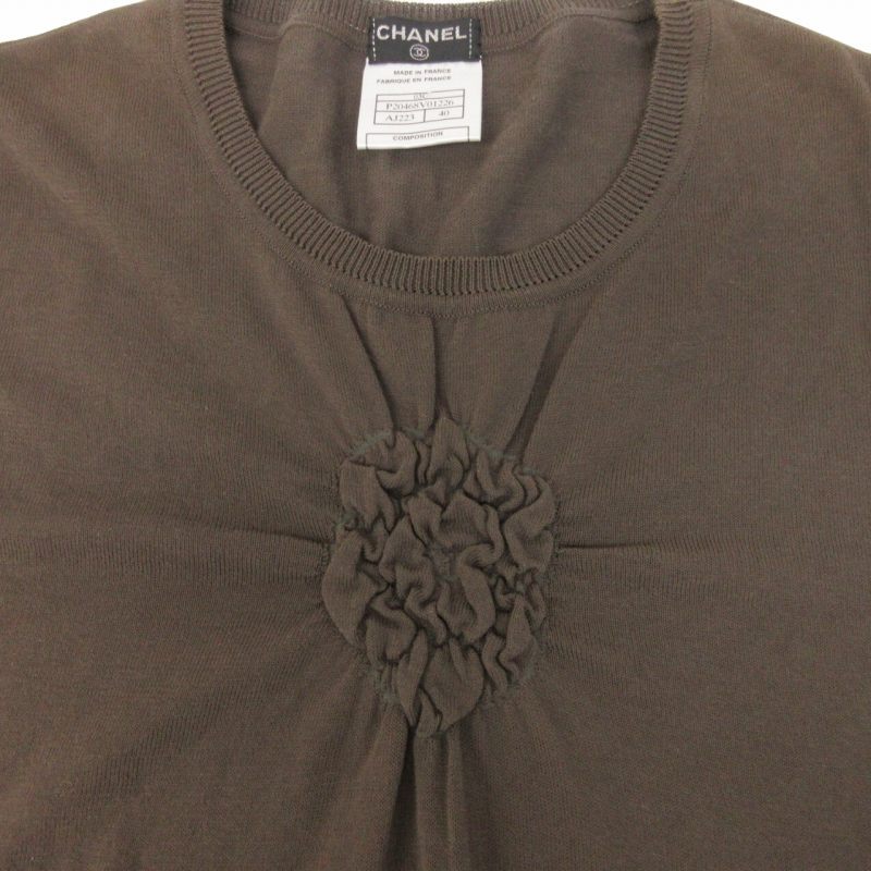 シャネル CHANEL 美品 03C ニット カットソー カメリア シャーリング デザイン 半袖 P20468V01226 茶 ブラウン 系 40 約L相当 IBO55