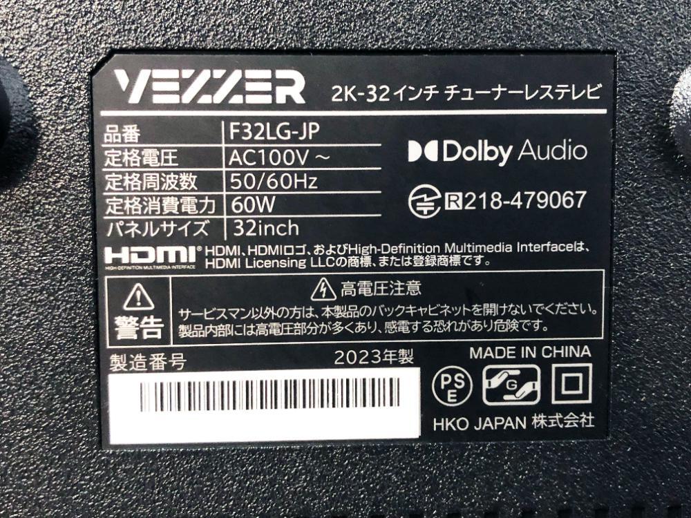 ★引き取りの大歓迎!! ご本人様が直接引取の場合、2,000円値引きます!! 是非お越しください♪ ※大変申し訳ございませんが、キャッシュバックは落札金額が5,000円以下の場合は発生致しません。 ★お取り置きOK!★ 3ヶ月間までは、無料でお取り置きできます! もしそれ以上の期間をご希望の方は、事前にご相談ください♪ 全国送料無料★2023年製★極上美品 中古★VEZZER 32型 Google TV Dolby Atmos対応!チューナーレス 液晶テレビ【F32LG-JP】FJSA ※写真に写っているものが全てとなります。リモコンは付属致しません。 ※写真のテレビ画面が若干波うって見える場合がありますが、単純に写真上干渉されているだけで、綺麗に映ります。ご安心ください。 ◆長時間(6時間)の動作確認をしており、不具合箇所なく、綺麗に映像映ります。 ◆他に多数出品しており掲載写真をご覧いただければわかりますが、細かすぎるかもしれませんが、私が気が付いたキズ等に関して、できる限りアップ写真を掲載しております。画面に関しては、電源を落とし目を凝らして確認しました。こちらの商品に関しては、私が見る限りで申し訳ございませんが、画面に小さなキズがあるくらいで、その他は全体的にはとても綺麗で、極上美品だと思います。 ※但し、中古品の為、私の気づかないキズ・汚れ等あるかもしれませんので、気になる方はご遠慮ください。 是非、ご検討をお願いします。 【商品説明】 ■チューナーレス テレビ放送チューナー(地上波/BS/CS)を搭載していません。動画配信サービスの視聴に特化した"チューナーレス”スマートテレビ。 ■フルハイビジョン液晶 フルHD液晶パネルを採用し、多彩なコンテンツを高精度な映像で表現します。 ■直下型液晶パネル 画面全体が明るく鮮明に映し出されます。 ■高音質機能 ドルビーオーディオは没入型の聴覚体験を提供し、ハイフィデリティのステレオ音とサラウンド効果で、細かい音まで鮮明に聞こえ、まるで現場にいるかのよう。 ■ドラマを思う存分楽しめる Google TVにより、TVer、YouTube、Amazonプライムビデオ、NETFLIXなど、色んな動画配信サービスに対応します。 ■Chromecast機能搭載! メーカー:VEZZER 型番:F32LG-JP 製造年:2023年 サイズ:32型 詳しくはこちら↓ ◆動作保証しておりますので、商品到着後3日以内に落札後の商品お取引画面から、動作不良等の内容をメッセージ連絡頂きましたら、初期不良対応は致します。但し、電源が入らない、全く稼働しない致命的な不具合に限ります。 ◆簡易清掃を行っております。 当方としては、清掃を行っておりますが、あえて簡易清掃と言わさせていただきます。 神経質な方や、新品同等のレベルをお求めの方、気になる方はご遠慮ください。 ◆その他、素人なりに慎重に確認したつもりですが、中古品の為、私の気づかない傷や汚れ等あるかもしれません。 専門的・神経質な細かな点までの対応はできませんので、基本的にノークレーム・ノーリターンでお願いします。 ※下記内容を最後まで、必ずお読み下さい。 ご入札・落札の際は、ご了承頂いたものとみなします。 注意事項★☆★☆★☆★☆★☆★☆★☆★☆★☆★☆★☆★☆★☆★☆ ●ヤフオクシステム改定に伴い、「 受取連絡 」が非常に重要となりますので、商品到着後24時間以内に受取連絡された方のみ、初期不良対応・保証対象とさせていただきます。 ●私としてで申し訳ございませんが、できる限り誠意ある対応を心がけているつもりですが、顔の見れないお取引が故に色々な方がおり、また人それぞれ感性など異なりますので、ところどころ、あえてと記載させて頂いております。 ●初期不良対応・保証に関して、お届け先へ商品到着後、3日以内が保証対象となります。 ●商品が届いたご住所で動作確認等行ってください。移動しますと保証対象外になります。 ●万が一、商品に不具合等がございましたら、落札商品お取引画面から具体的な不具合等の内容をメッセージして下さい。商品到着後、3日以内メッセージを頂けていない場合は、保証対象外となりますので、必ずお願いいたします。 ●家電に関しては、あえて、電源が入らない・全く稼働しないなどの致命的な不具合、家具類など電気を使わないものは、その物として成り立たない物に限らさせていただきます。 ●動作確認・状態確認が終わるまで、梱包材・運送会社の伝票など必ず保管してください。保管されていない場合、初期不良対応・保証ができなくなる場合がございます。 ●運送事故の恐れがあった場合、所有権がお客様側に移っておりますので、お客様にて運送会社とのご対応をしていただくことになりますが、穏やかなお話合いができる方に関しては、不慣れかと思いますので、こちらもできる限りのご協力をさせていただきます。 ●当方は、運送会社が起こしたトラブル・遅延に関しては、一切の責任を負いません。 ●商品に不具合等あっても、設置代金等、一切の責任を負いません。 ●勝ってな返