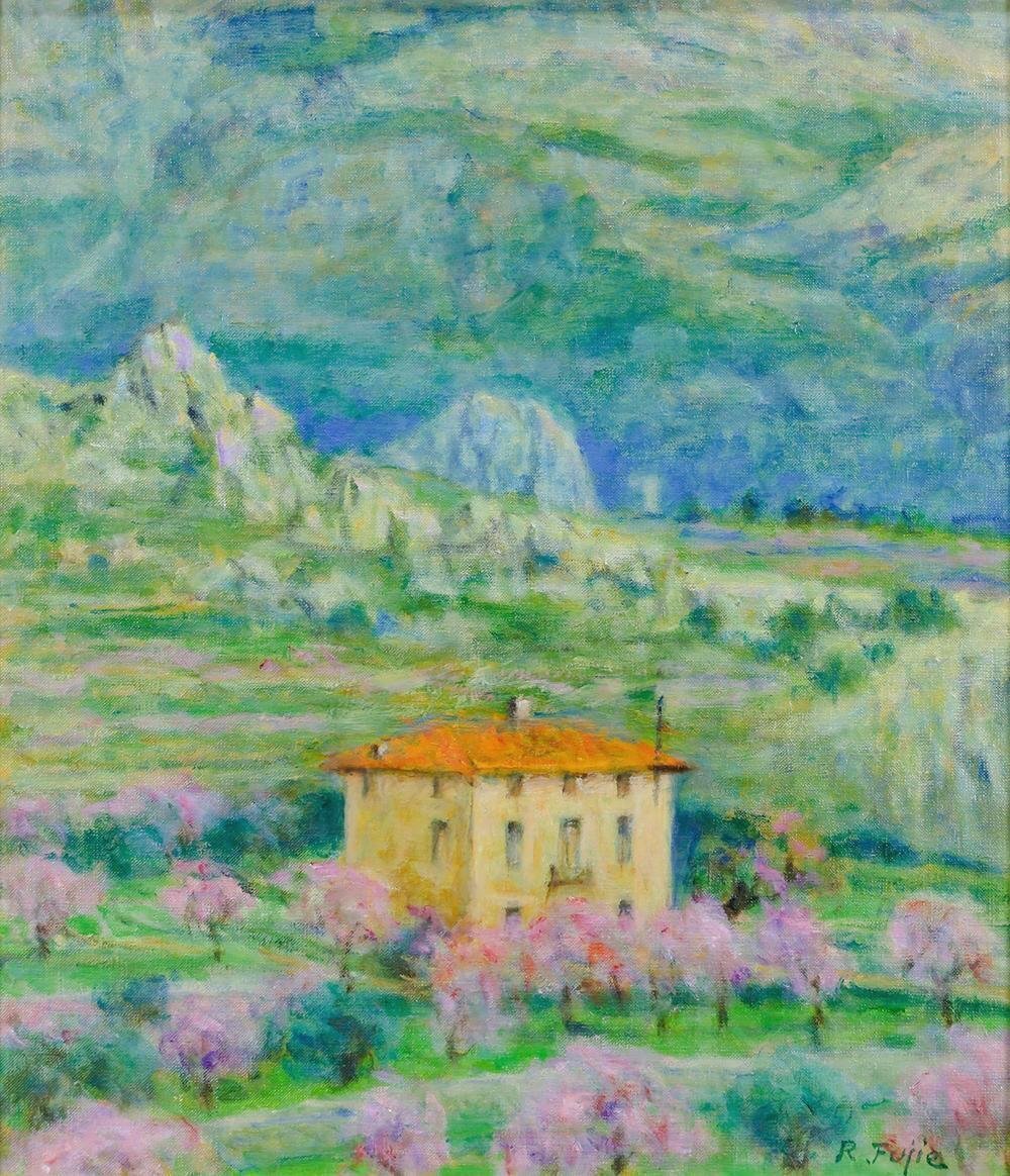 【真作】【WISH】藤江理三郎「コンフリーデロの農家」油彩 10号 1998年作 共シール 風景   〇無所属 元光風会会員 師:南薫造 #25092696