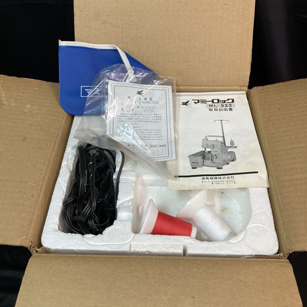 DIf721D12 動作品 美馬精機 マミーロック ML-322 ロックミシン フットコントローラー付き 箱説付き |