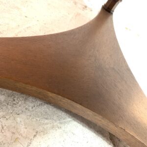 クラシカルな意匠を取り入れた脚部は、三本の支柱を三角形の補強板でしっかりと支える堅牢な構造。シンプルながら気品のある存在感を放ち、リビングや応接室、ホテルや店舗のラウンジ空間にも調和します。