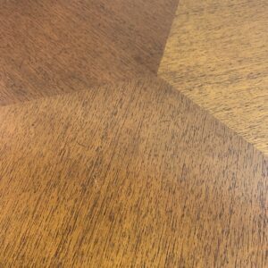 上質な木材を用いた天板は寄木調の美しいデザインで、空間に温かみと重厚感を与えてくれます。