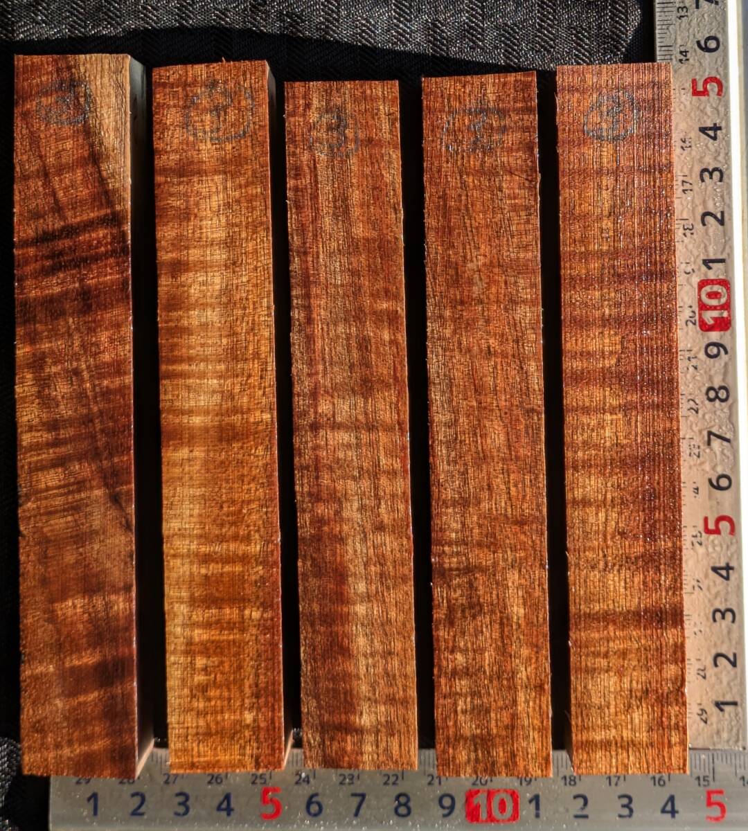 超目玉限定出品・KOA-PEN-017・ペンブランク・5本セット・希少・送無・4A+ カーリー ハワイアンコア ・ハワイ島直送 ◆ Hawaiian Koa Wood