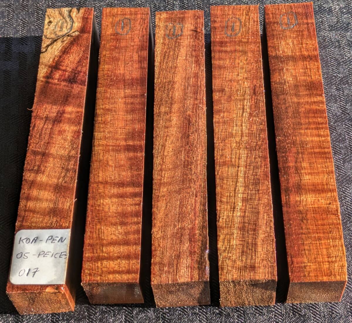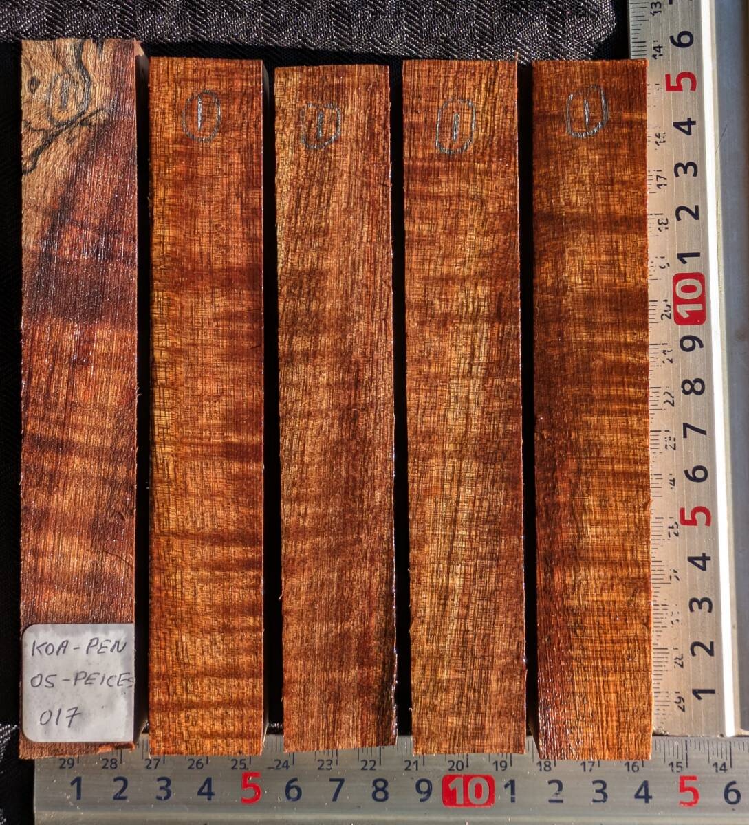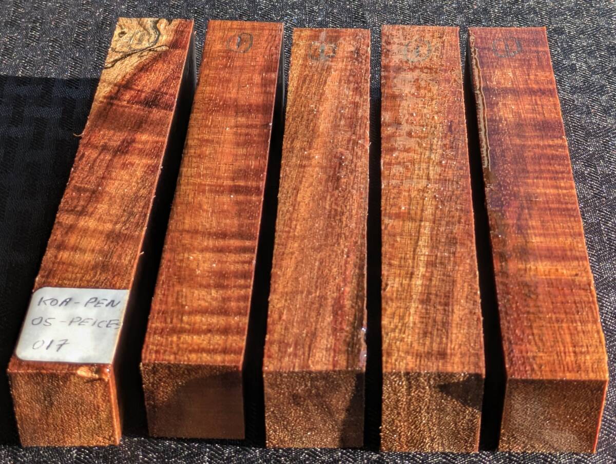 KOA-PEN-017・  5本セット・777円スタート!・ ペンブランク ・  超目玉限定出品 ・ 送料無料 ・ 4A+ [中上カーリーハワイアンコア ・ ハワイ島の供給業者から直送・再植林プロジェクトの一環  とても美しい色合い