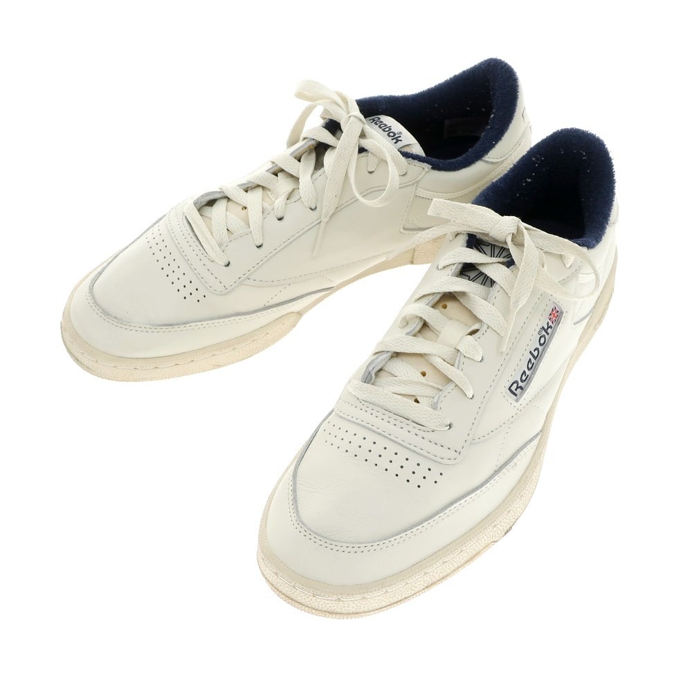 【中古】リーボック Reebok CLUB C レザー スニーカー アイボリーxネイビー【サイズUS 9 1/2】