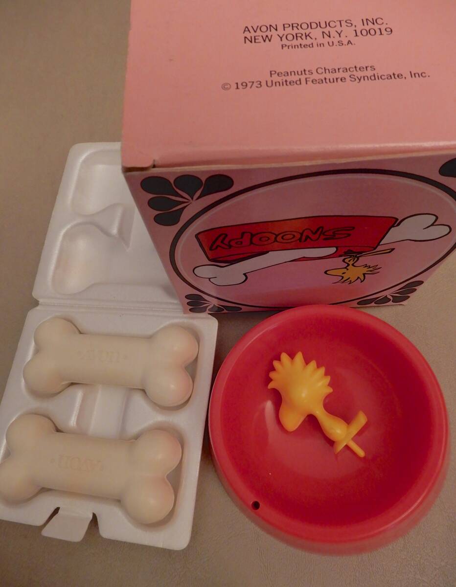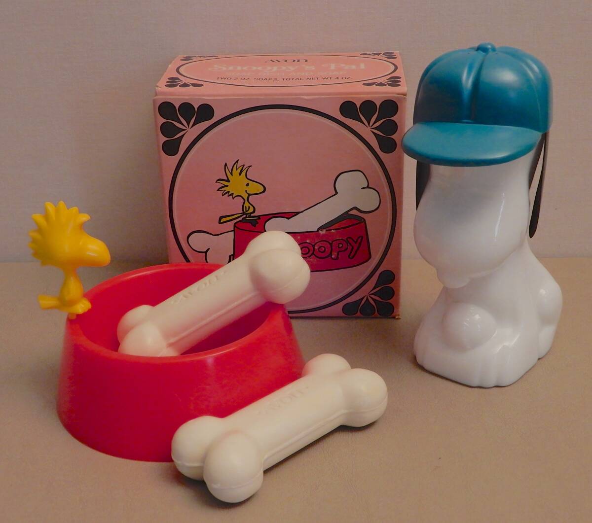 【USA発送★AVON★エイボン★ヴィンテージ】1969年スヌーピー/野球帽/フィギュア/ミルクグラス★1973年ウッドストック/ソープ/犬のお皿型