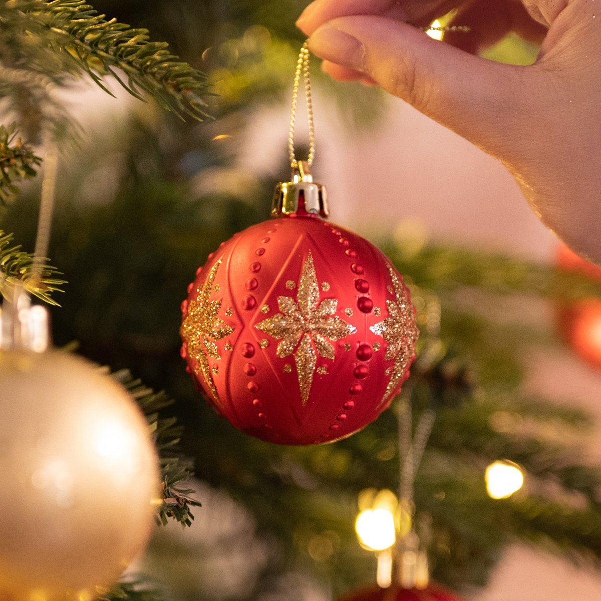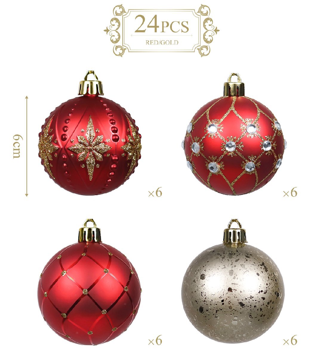 ボール型オーナメントの直径は約6cmとやや大きめのサイズ感で、計24個がセットとなっています。