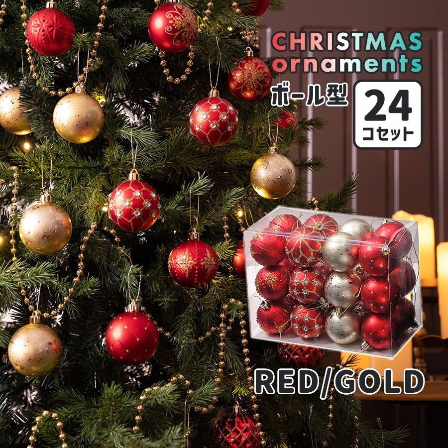 クリスマスツリーオーナメント ボール型24個セット RED/GOLD オーナメントボール 装飾 Xmas Christmas デコレーション インテリア 雑貨